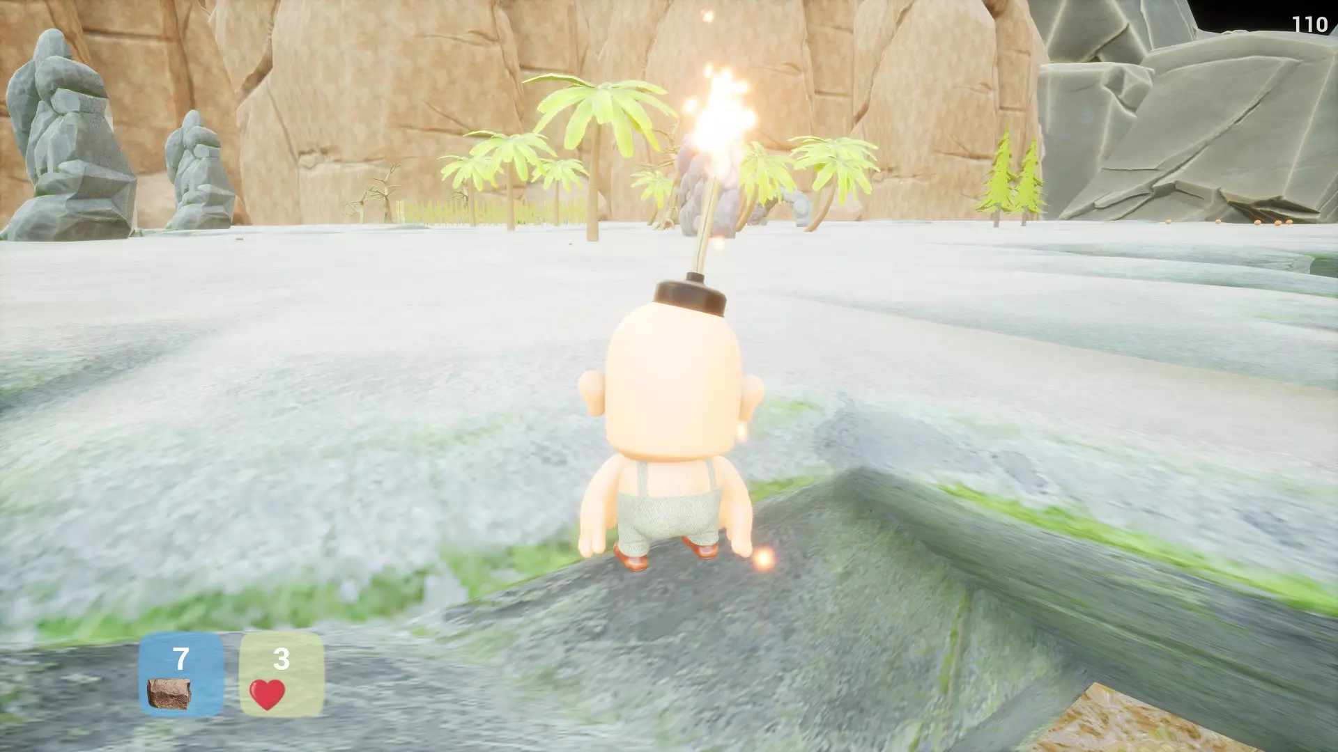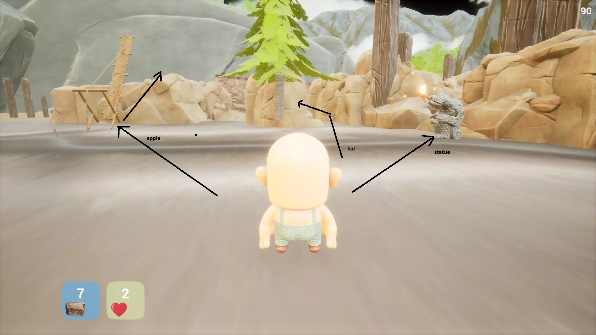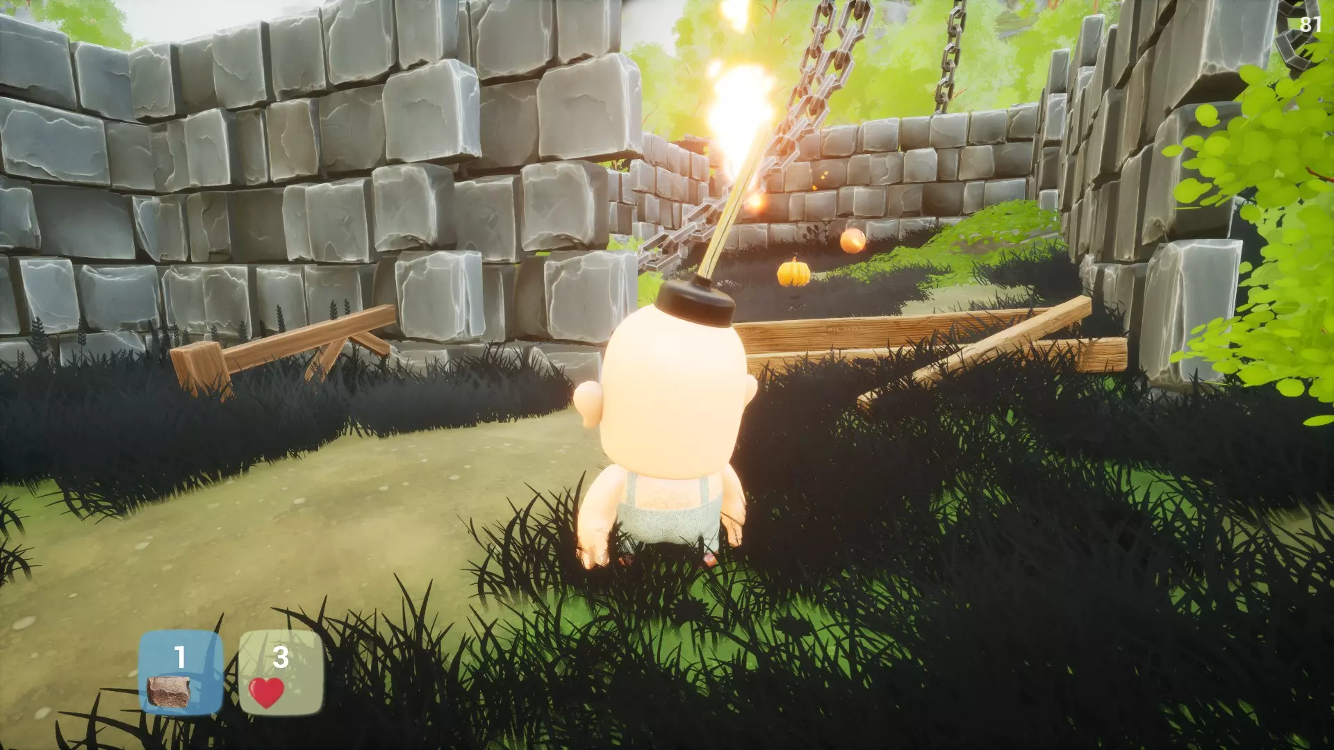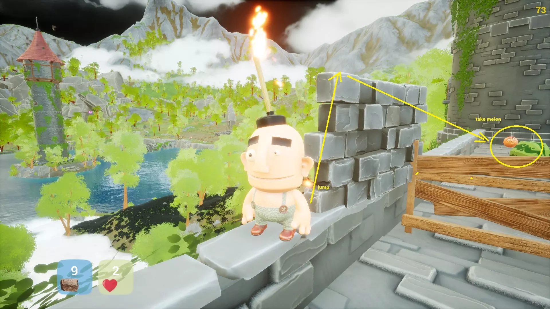 在30分钟内获得所有成就(取决于技巧) 成就 1. 在城堡顶部找到香蕉。找到石头并投掷3次以打破木板封住的门口。跳过栅栏以节省石头。