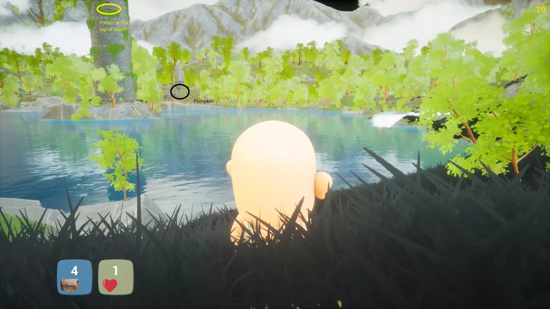 7. 前往塔顶寻找南瓜和土豆(避开敌人,你可以在水上行走)