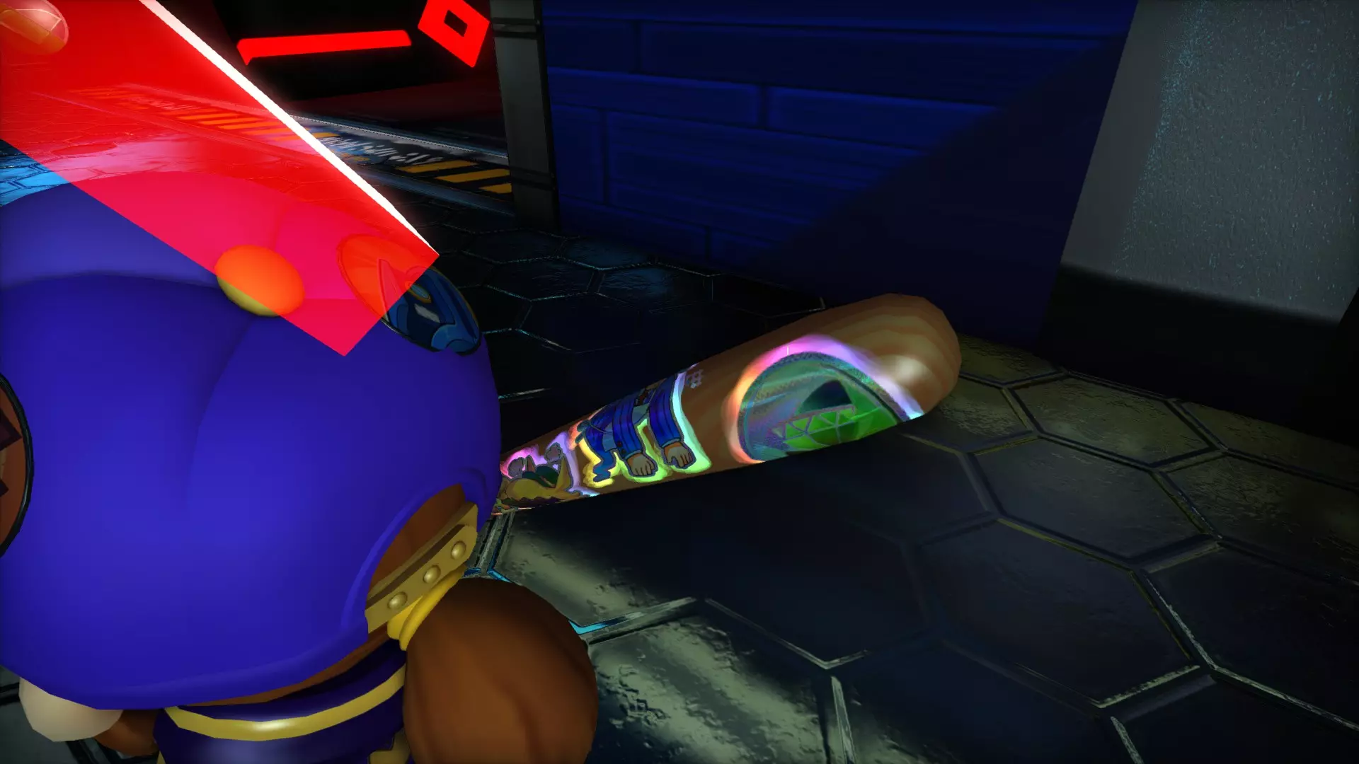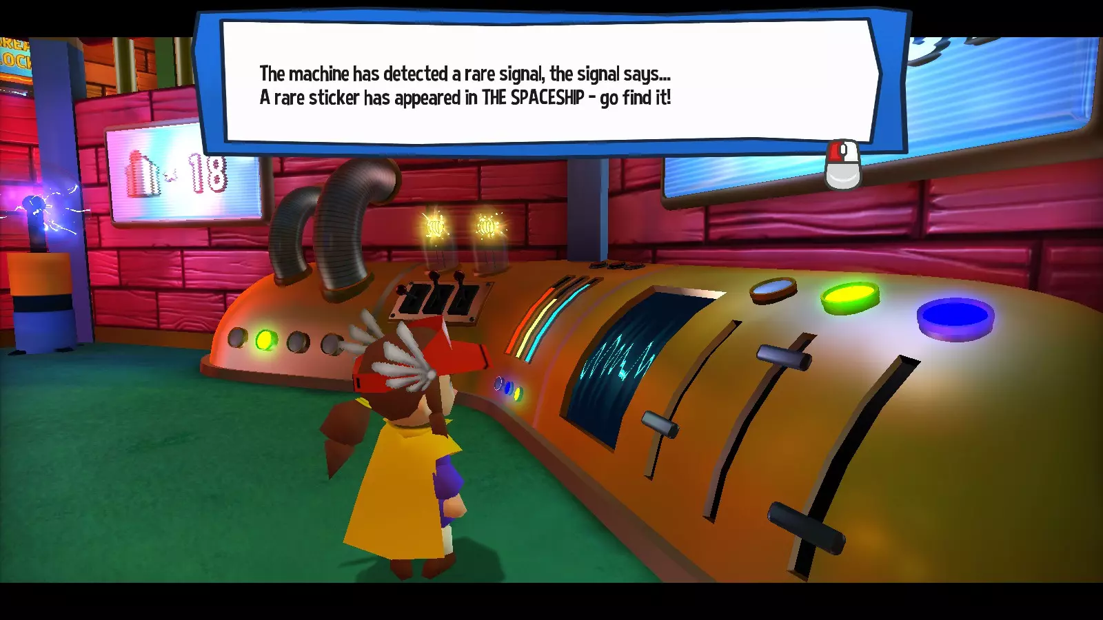 图示:位于飞船主体部分的机器,用于提示飞船内已生成贴纸。 贴纸生成的场景和位置是随机的,但如果你使用从黑手党老大处购买的指南针徽章(黑手党罐子?),它会以晃动的彩虹箭头大致指向稀有贴纸的方向。