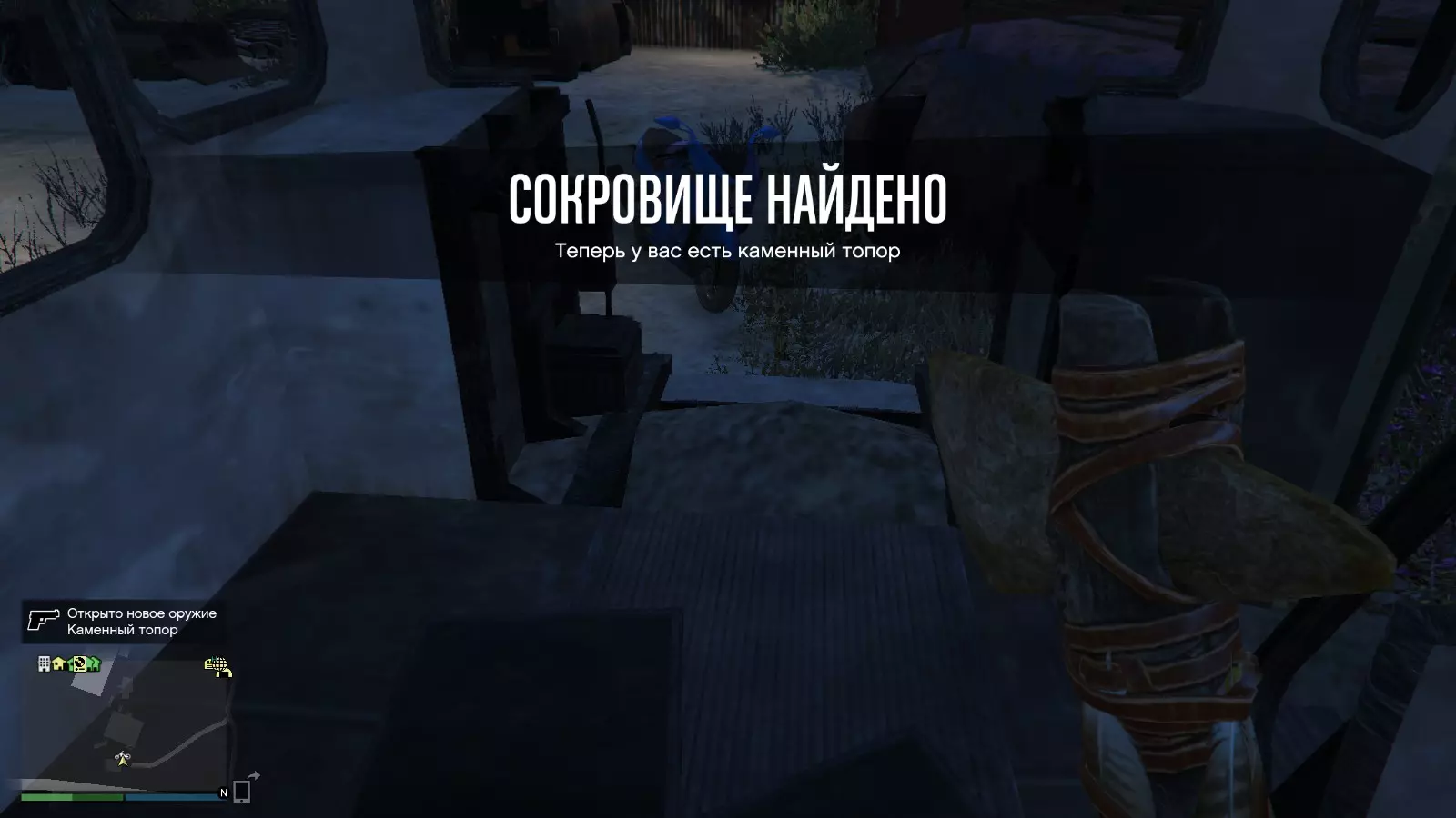小斧头 在地图上标记的位置,你会找到一个箱子,里面就放着来自《荒野大镖客2》的那把石斧。