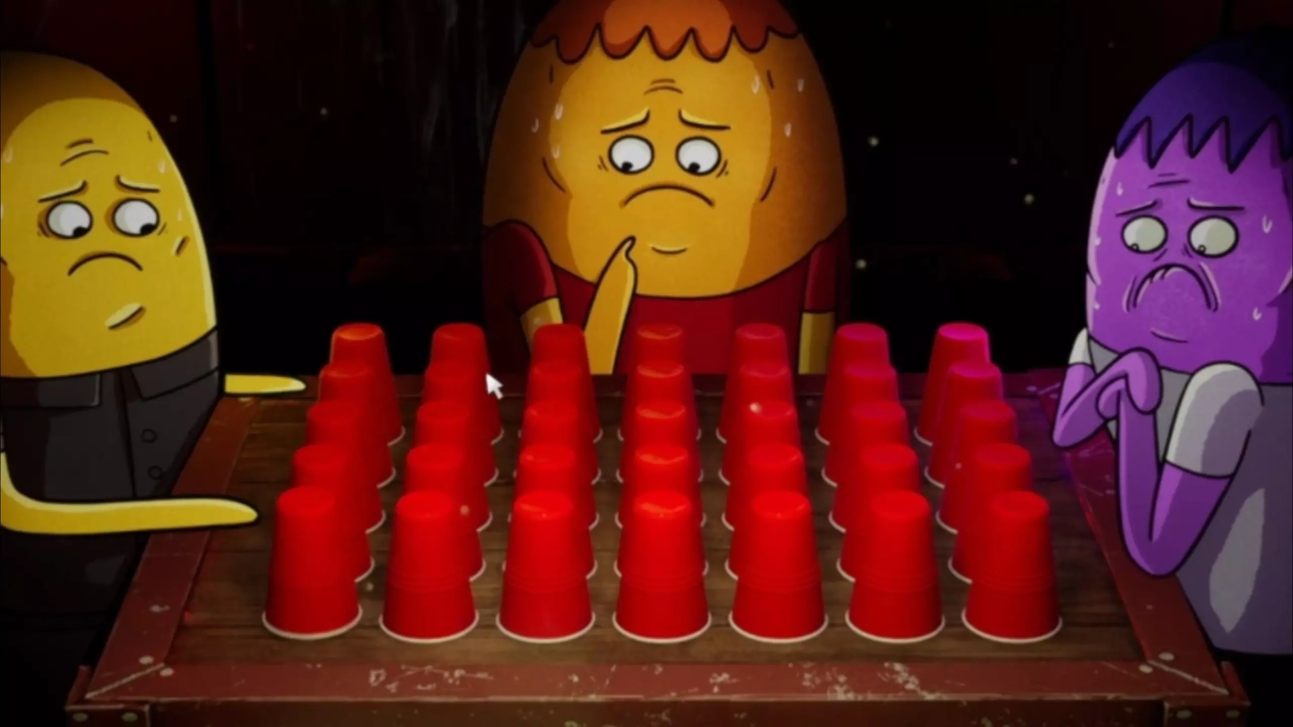这是一款多人杯子挑战游戏,玩家需按指令翻转杯子,画面中显示了“FLIP 3”的挑战卡牌,玩家轮流进行翻杯子操作,过程中还有互动调侃,充满紧张趣味。