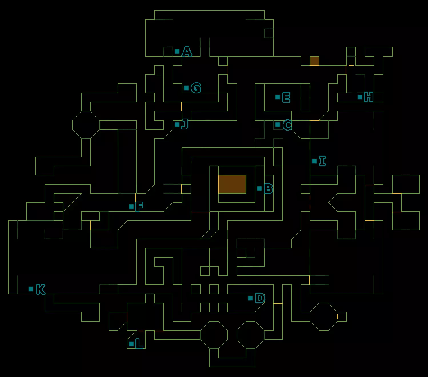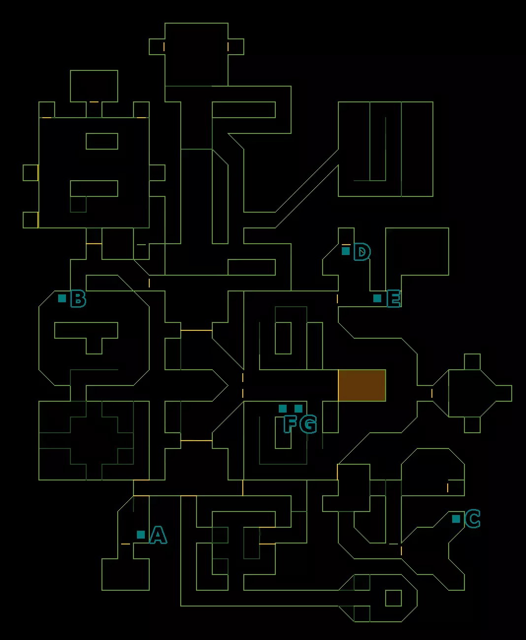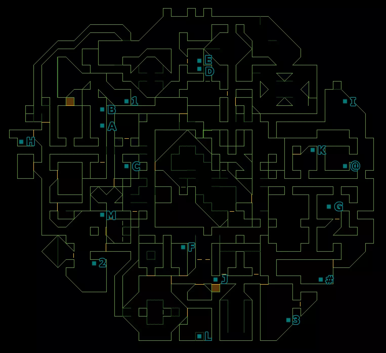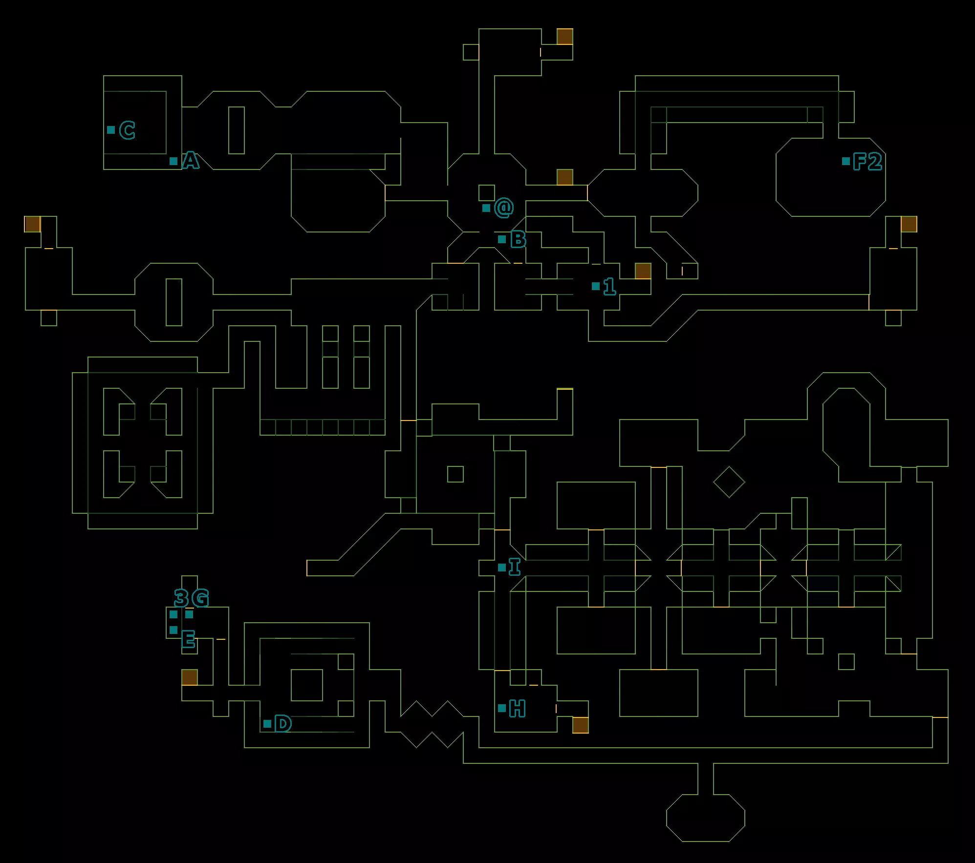 音频日志 A:恩迪科特-14.SEP.72 - 在北电梯旁有很多尸体的房间里。 B:王-16.SEP.72 - 在北电梯旁有很多尸体的房间里。 C:梅尔维尔-18.SEP.72 - 在有很多尸体的房间东南方向的一个小房间的柜子里。 D:达西-20.OCT.72 - 在阿尔法象限的达西办公室里。 E:达西-21.OCT.72 - 在阿尔法象限的达西办公室里。 F:斯坦内克-11.SEP.72 - 在南电梯所在走廊西端的小房间里。 G:SHODAN-05.NOV.72 - 在网络空间终端之间有地板灯的房间里。 H:斯坦内克-24.OCT.72 - 在北电梯正西的一间办公室里。 I:SHODAN-03.NOV.72 - 在生物污染区域,靠近损坏的手术机器。 J:贝尔加-27.OCT.72 - 就在南电梯前面。K:SHODAN-19.10.72——在网络空间终端附近带有辐射门的小房间内。 L:Ander-11.09.72——在同位素储存室东南方向的房间里的桌子上。 M:Baerga-16.10.72——在北电梯南侧的辐射桶附近的柜子里。 笔记1:工程师报告——在北电梯旁有许多尸体的房间过去的桌子上。 2:采矿权文件——在北电梯南侧的辐射桶旁的黑暗角落里。 3:机器人关闭代码——在机器人维修室。 数据目标 网络-2:1号房间(终端@) 激光覆盖代码:3号房间(终端#) 网络-4:4号房间(终端#) 数据目标 1:2号房间(终端#) 2:4号房间(终端#) 3层——维修区