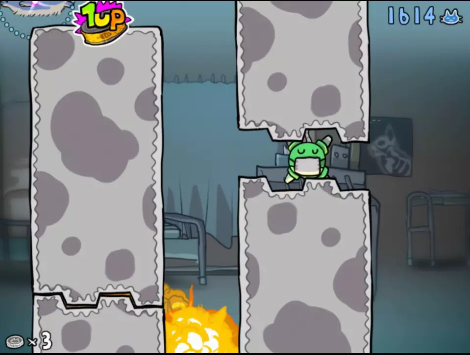 隐藏1UP: 1UP位于第三天接近尾声的地方。在第二波长猫之后,等待第一只绿色面具猫被它所在的方块压扁。1UP就在那个方块的顶部。