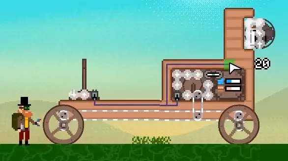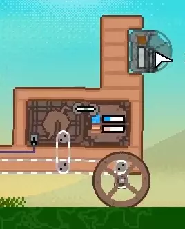 现在唯一缺少的就是弹药了。轨道炮使用岩石作为弹药,给轨道炮提供10块岩石,并安装杠杆。现在你就可以发射轨道炮了——但要记住,这样做会消耗锅炉里的蒸汽。 添加第二门轨道炮并“混合搭配” 作为这个装置的最后一项改装,我打算再添加一门轨道炮,这样就能射击车辆另一侧的敌人了。我会先为第二门轨道炮找个合适的位置。