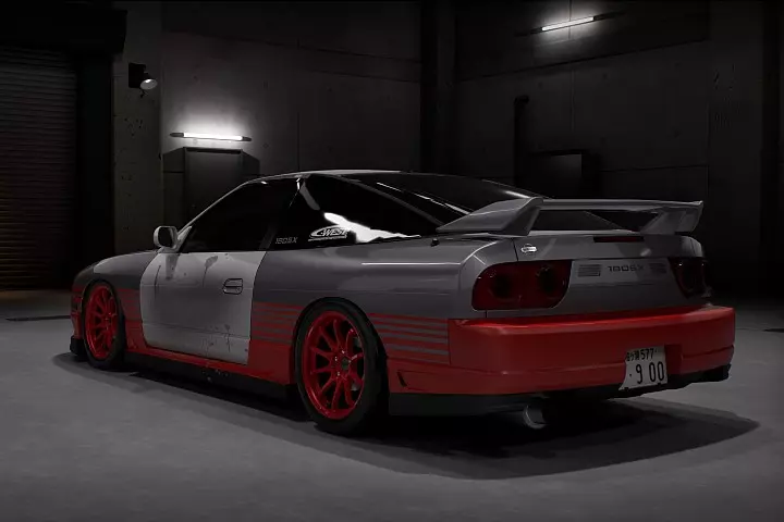 一套灵活且非常敏捷的拉力赛调校。如前所述,遗憾的是游戏中无法调整沉重的牵引力控制系统。此调校包含现实世界中的X Shift GrN短换挡变速箱设置。定位 F R 外倾角 -3 -2 前束 +1 +2 离地间隙 -4 -3 轮距偏移 +6 +8 刹车 F R ABS 关闭 关闭 刹车平衡 0 -2 LSD F R 类型 1.5向 1.5向 初始扭矩 +8 +9 LSD 比率 +9 +8 悬挂 F R 弹簧硬度 +2 +4 减震器 +3 +5 平衡 +70 +65 防倾杆 F R 硬度 +3 +1 变速箱齿轮比 速度(公里/小时)1 3.000 66 2 2.000 94 3 1.470 131 4 1.220 177 5 1.040 227 6 0.830 275 终传比 3.850 扭矩分配 四驱 前后 +70 日产 180SX