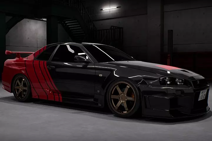 一辆用于赛道的赛车行驶在路上。目前,它在直线加速赛中能够超越对手Shuwa Shuwa,并且使用原厂中胎就能做出原地转圈动作。不过我感觉齿轮传动系统似乎有问题,速度无法超过约305公里/小时,所以我没去调整齿轮。目前请务必使用比这更短的齿轮!车辆调校参数: 定位 F R 外倾角 -3 -1 前束角 +2 +1 离地间隙 -3 -2 轮距偏移 +8 +8 刹车 F R ABS 开启 开启 刹车平衡 0 0 限滑差速器 F R 类型 1.5向 1.5向 初始扭矩 +8 +9 限滑率 +6 +9 悬挂 F R 弹簧硬度 +2 +4 减震器 +4 +4 平衡 +60 +80 防倾杆 F R 硬度 +4 +1 变速箱齿轮比 速度(公里/小时) 1挡 3.410 72 2挡 2.425 101 3挡 1.735 142 4挡 1.290 191 5挡 1.000 246 6挡 0.795 310 终传比 4.000 扭矩分配 四轮驱动 前后 +90 注:R33和R34没有锁止式四轮驱动系统,而是采用ATTESA系统,该系统通过三个差速器连接到电子控制单元,可根据当前路况实时调整扭矩分配以获得最大牵引力。但我严重怀疑游戏中是否实现了这一功能。 车型:日产GT-R R35