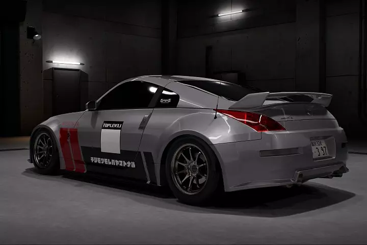 适合在不使用氮气加速的情况下对抗那些要求如此的漫游者。传动系统采用现实世界中Speedtek Racing为RB26发动机设计的狗牙式5速变速箱,搭配标准240Z差速器和3.900的终传比。定位 F R 外倾角 -3 -2 前束 +2 -1 离地间隙 -2 -2 轮距偏移 +9 +7 刹车 F R ABS 关闭 关闭 刹车平衡 0 -4 限滑差速器 R 类型 1.5 向 初始扭矩 +9 限滑差速器比率 +6 悬挂 F R 弹簧硬度 +2 -1 减震器 +6 +2 平衡 +60 +40 防倾杆 F R 硬度 +1 -2 变速箱齿轮比 速度(公里/小时)1 2230 120 2 1625 165 3 1263 212 4 1000 268 5 0814 330 终传比 3900 日产 350Z