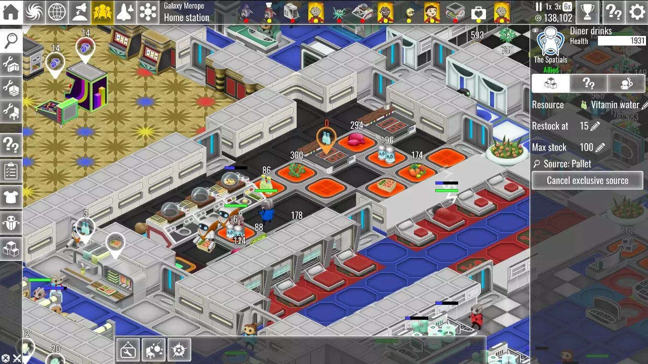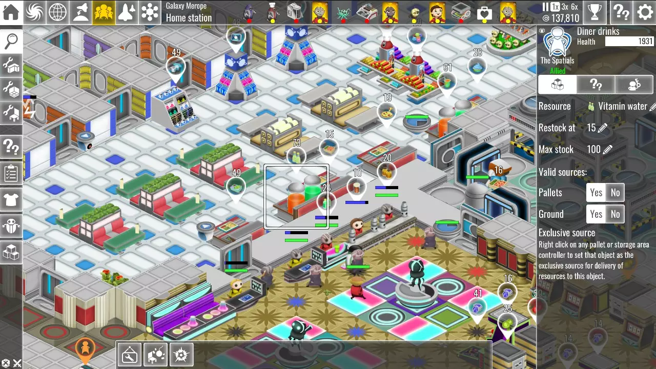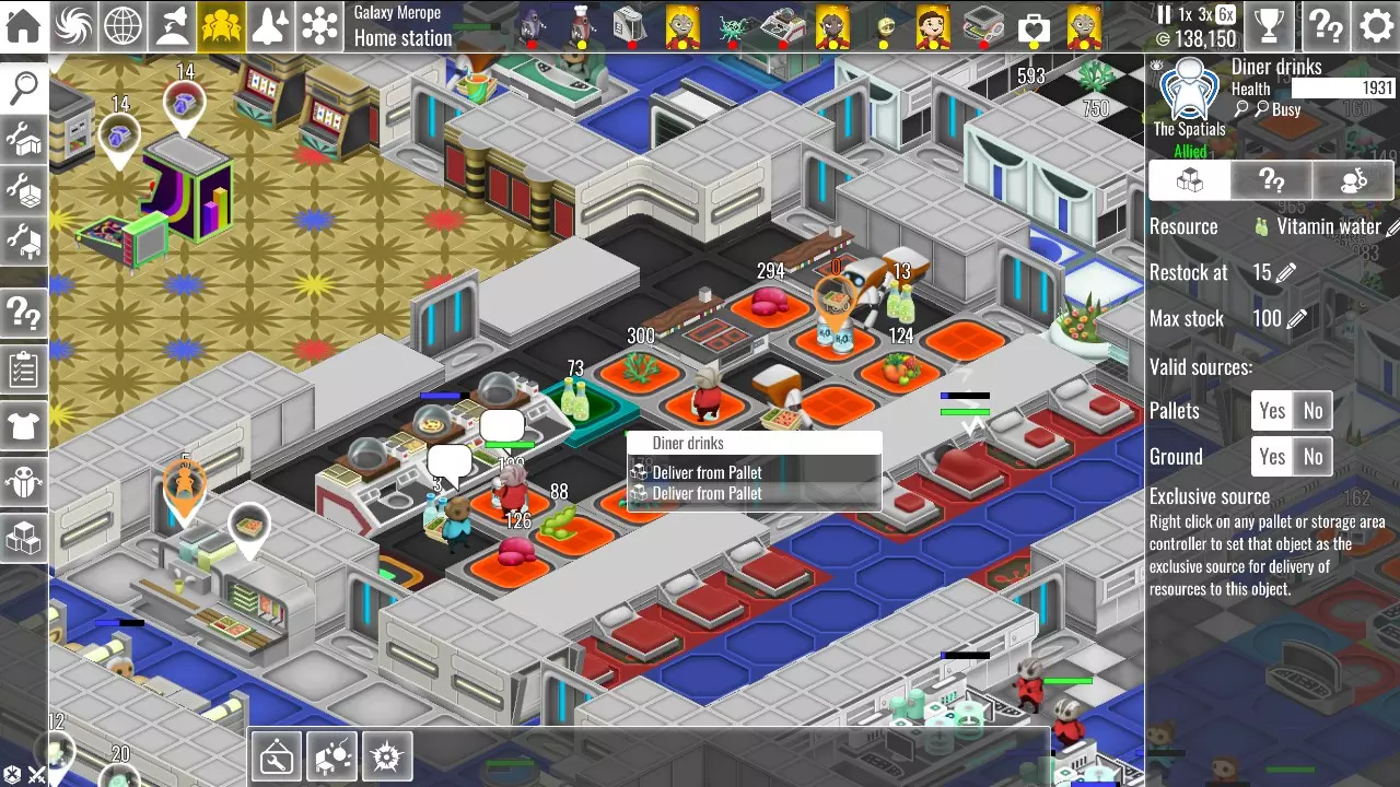 当然,你也可以选择完全不建造任何存储区或货盘,直接让你的船员把东西扔在地上。这样和存储区一样“有条理”,几乎不会浪费时间在补货上,而且最重要的是——免费。