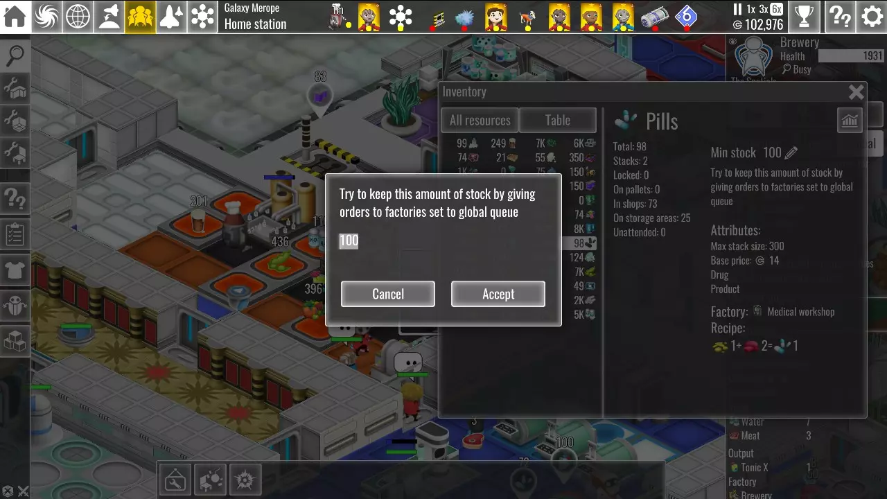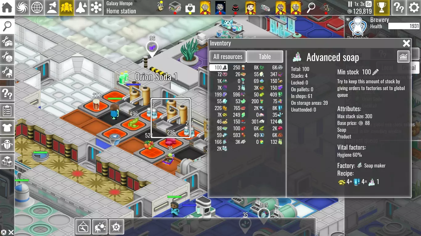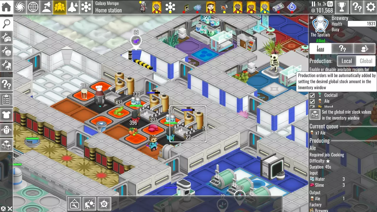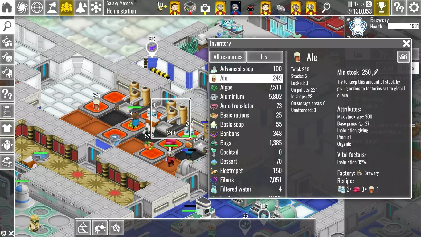 选择全局生产后,你可以为任何产品设定最低库存量。一旦某产品被纳入全局生产,当该产品的库存低于设定的最低值时,你的员工就会自动开始生产。