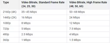 CBR(恒定比特率)是第二种比特率类型。用户可以手动进行设置。CBR是一种每秒都等于特定kb/s数值的比特率类型。比特率越高,对电脑性能的要求就越高,帧率卡顿的可能性也越大。 以下表格列出了常见分辨率设置下标准帧率和高帧率对应的视频比特率。表格中的视频比特率单位为Mbps,这意味着在Gecata中设置时需要将数值乘以1000。