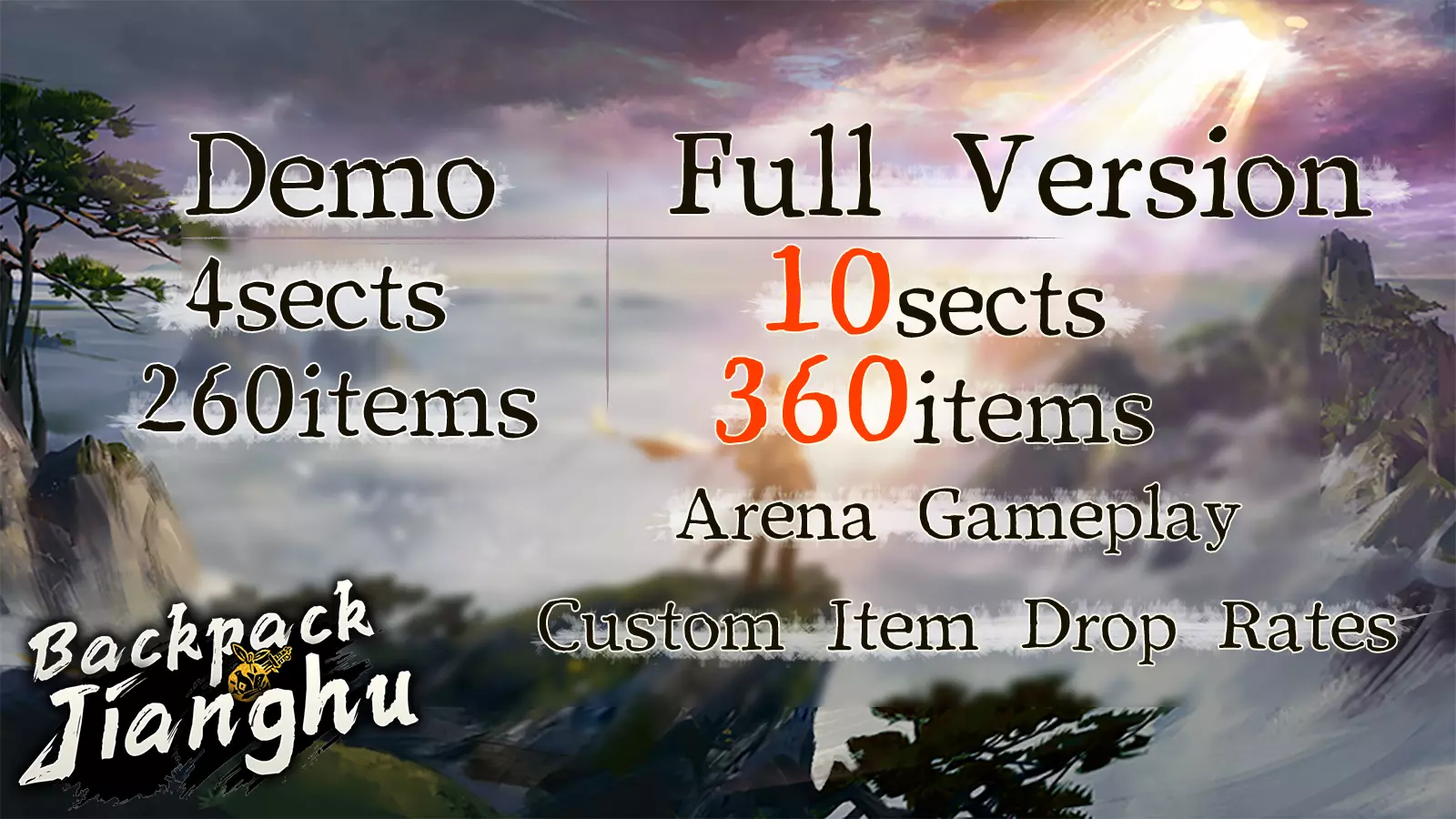 一边是运筹帷幄、把绝世武学和神兵利器塞满背包,在华山之巅大杀四方的背包管理肉鸽爽游;另一边是在百万字非线性剧情中自由探索的开放世界! 一个江湖装不下所有快意恩仇?那就两个一起打包带走! 我们相信,江湖从来不止一种模样。有人喜欢在背包里构筑最强套路,有人偏爱在高自由度剧情里走出自己的路——而这次,你不需要二选一;不试试,怎知不是绝配? 所以我们和【灵兽江湖】的兄弟们一拍即合,就一句话:“江湖这么大,两个一起逛才够本。” 今天行走于江湖,如果有人跟你说“只花10铜钱就登顶华山了”,你可以不信。但如果有人说“两个江湖一次性打包带走”—— 请一定相信! 江湖之中,结伴同行 《背包闯江湖》将于4月3日正式在Steam平台发售。期待在《背包闯江湖》看见你的身影!