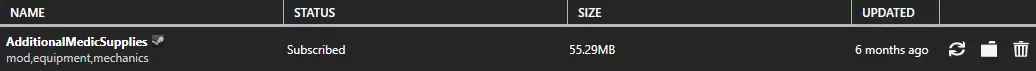 在名称左侧,有一个小型的【Steam】图标,点击该图标可直接跳转到Steam创意工坊页面,以便查看该模组的详细信息。你还能看到模组的状态(是否已安装)、大小以及最后更新时间。每个模组的右侧还有几个小图标。