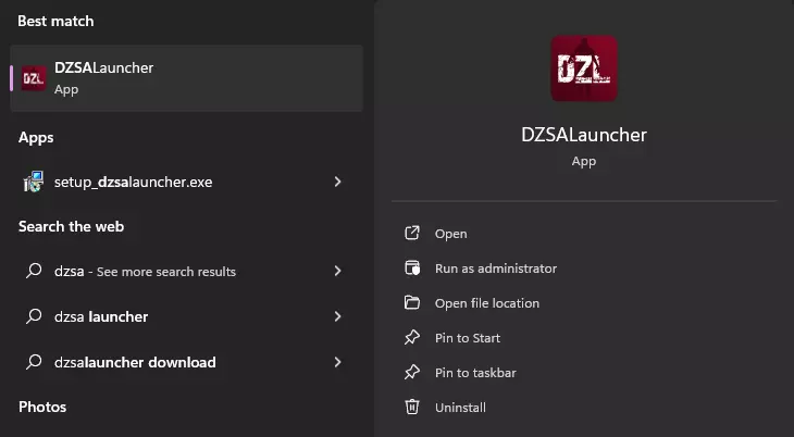 步骤7 - 完成后,如果你创建了桌面快捷方式,点击该快捷方式;或者在Windows任务栏搜索框中输入DZSA(DayZ启动器)。请记住,在此之前确保已登录Steam并在你的电脑上安装了DayZ!