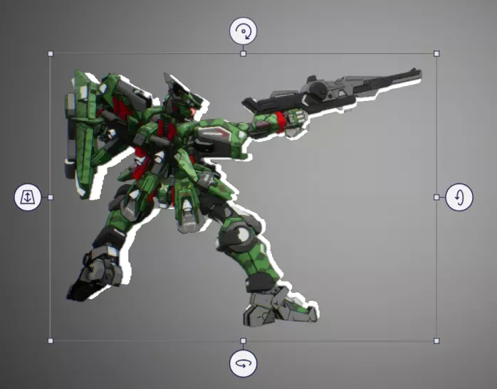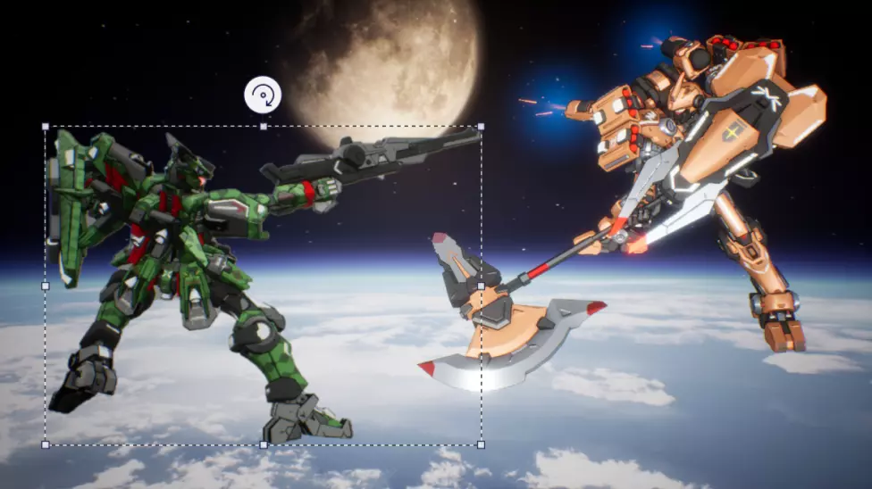 若要裁剪机甲,请点击【魔法选择】并调整裁剪范围使其仅包含机甲。接下来,系统会自动用蓝线勾勒出你要裁剪的机甲部分。如有需要,你可以进行调整以包含推进器效果。