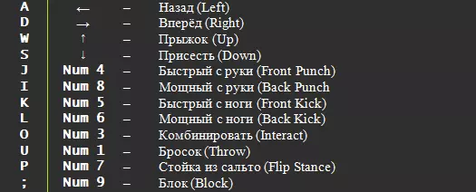 基础攻击(Basic Attacks) 后拳:I 后跳踢:W、L 后跳拳:W、I 前跳踢:W、K 前跳拳:W、J 提膝:D + L 低踢:S + K 低刺拳:S + J 中立跳拳:W + J 快速刺拳:J 尖刺上钩拳:S + I 胫骨打击:A + K 侧踢:L 快靴踢:D + K 扫堂腿:A + L 投掷:U 脚趾踢:S + L 连击(Kombo Attacks) 回来吧:I、D + L 领先一步:A + K、J 格斗之靴:K、I 机械战警:A + K、J、I 恶作剧:J、J 无处可逃:D + K、K 恶棍:J、J、I 特殊技能(Special Moves) 飞刃投掷:S、D + I 卡诺球:A、D + K 空中球:W、A、D + K 向上球:S、A + I X射线:撕裂者:P + ; A风格技能(突击队员/Коммандо) 窒息:S、D + J 高位反击:S、A + J 低位反击:S、A + K 力量招式: 猛击:S、D、A + L 肋骨撞击:S、A、D + L 碎木机:K、I、J + K B风格招式(割喉) 能量提升:S、S + K 态度问题:D + I、J、I 刀刃挥砍:S、A + J 嗜血:A + J、I、J 充能:S、S + K + ; 注意:D + I、J 潜行之刃:A + J 终结:D + I 麻烦:A + J、I C风格招式(赛博) 大爆炸:D + K、I + L 黑市:A + I、K、J + K 燃烧器:D + K、J + K 咧嘴笑:A + J、K、J + K 眼球爆裂:S、A + J 肠道冲击:A + I、K、I + L 飞刀投掷:S、D + I 能量工厂:A + I 胃痛:A + J、K、I + L 背叛:A + I、K 向上激光:S、A + K 终结技 残忍终结:Ballin':W、A、D + K 残忍终结:Glaring Light:S、A + K 残忍终结:Just The提示:S、A + J 终结技:Pop Off:S、D + J 终结技:Wham Bam:S、D、A + L 致命一击:Head Case:S、D、S、A、K 致命一击:Knife To Meet You:S、S、D、J KENSHI