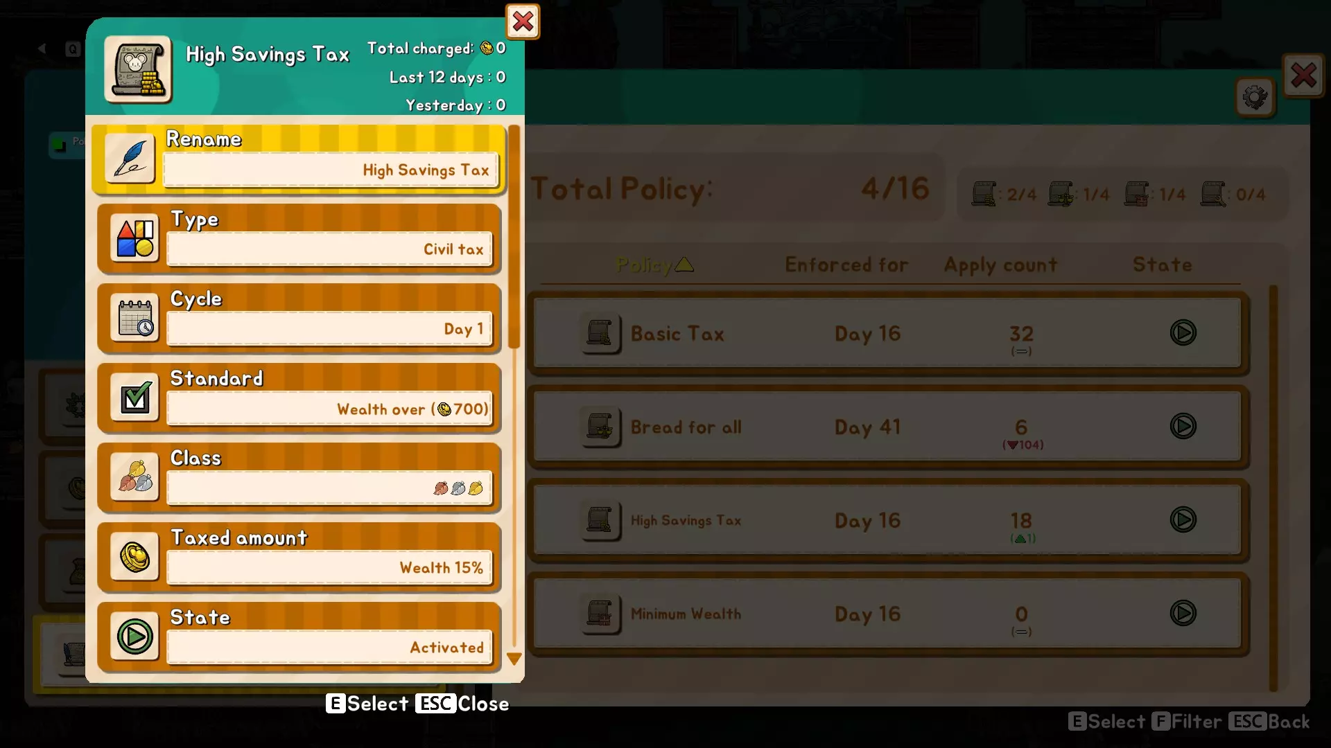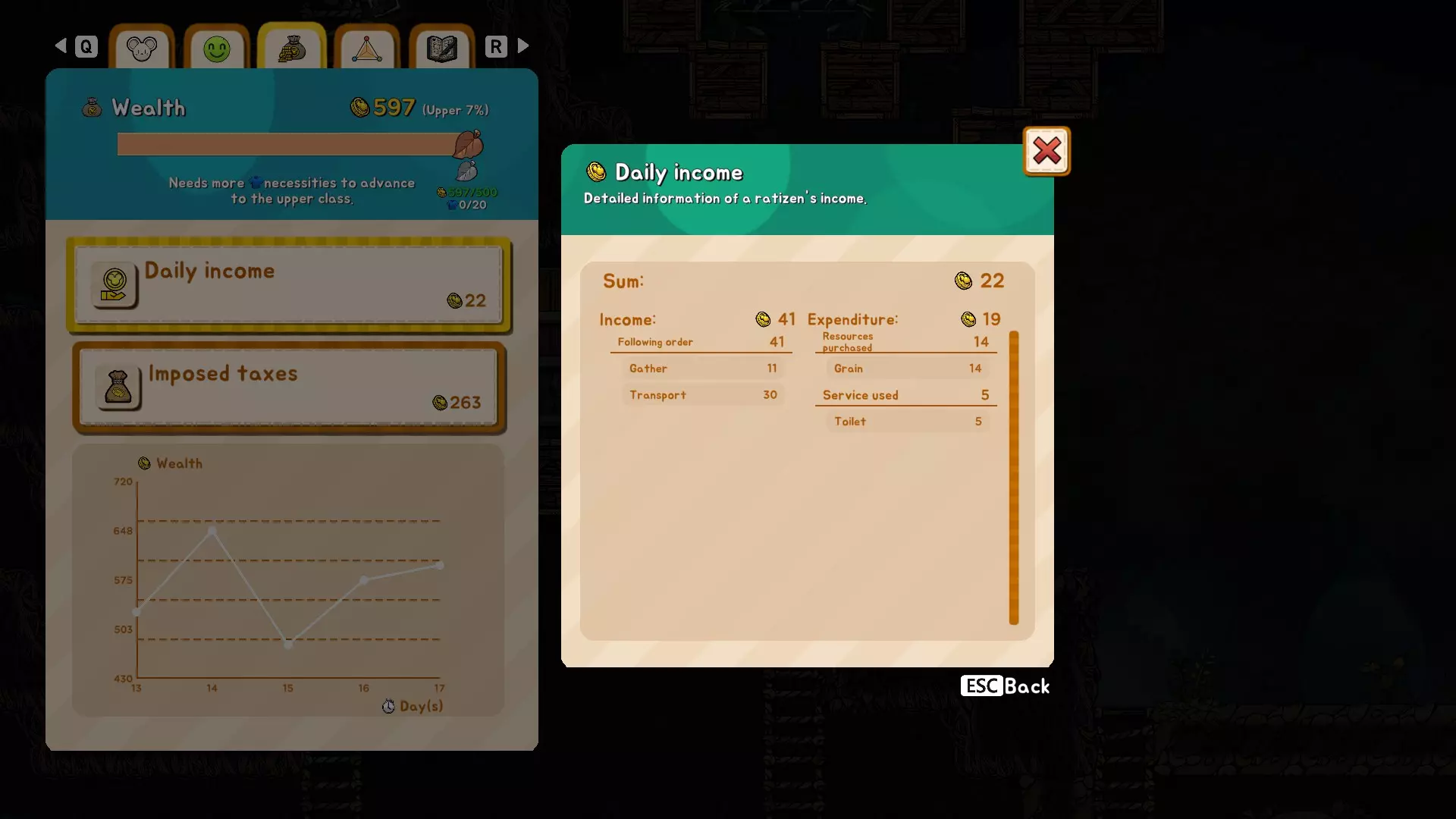 游戏中期 一旦我们开始与其他国家进行贸易并出售我们的达尔货币,我们将有足够的资金开始准备将我们的鼠民提升到更高的阶级。注意,我们现在正在对他们的收入征税。