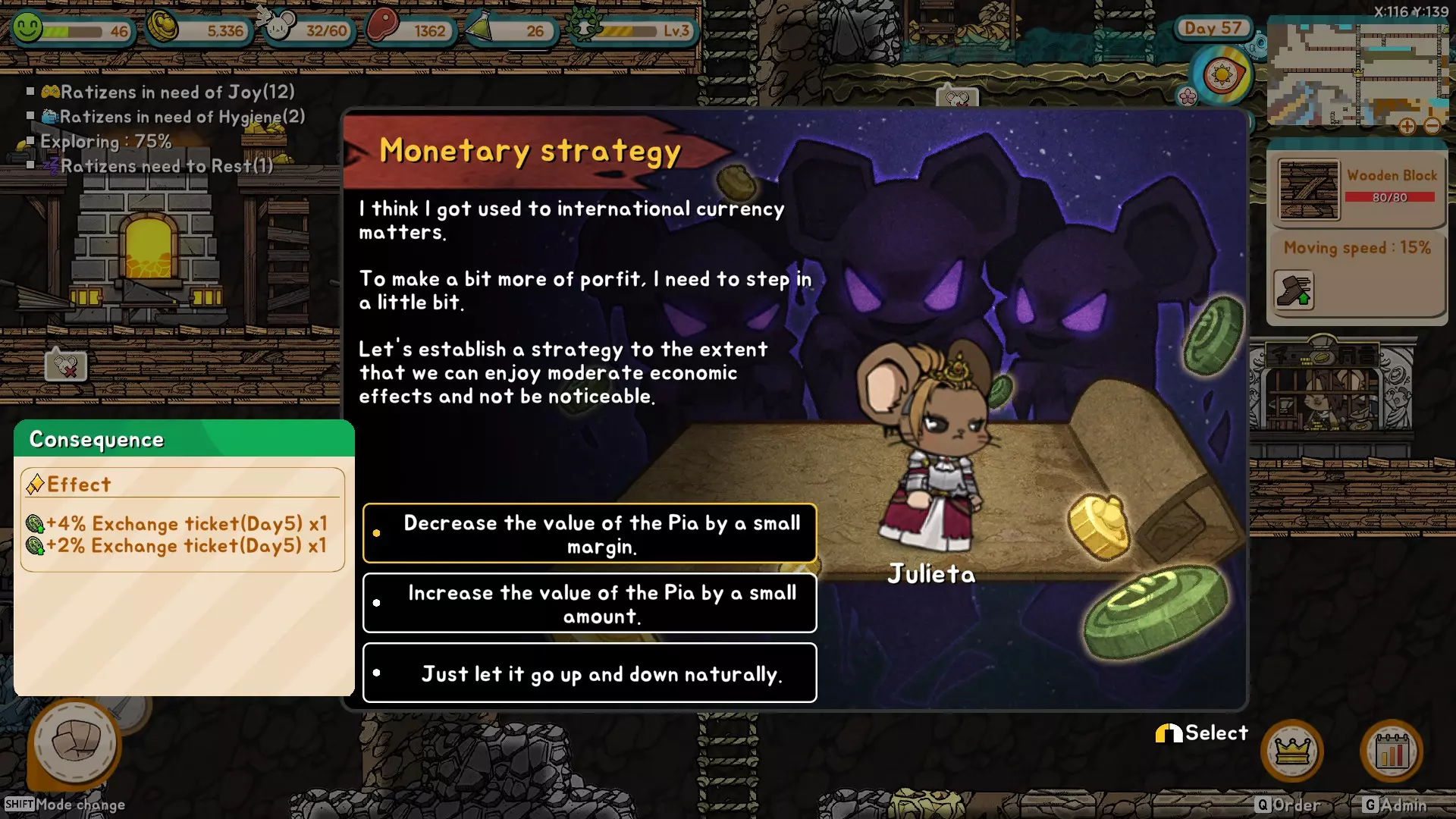 一些小技巧 这是提升经济的最佳方法。一旦建造了银行,你就会获得调整货币价值的对话选项。显然,如果你想购买达尔,就需要提高皮亚的价值。如果你想出售达尔以换取皮亚,就降低皮亚的价值。