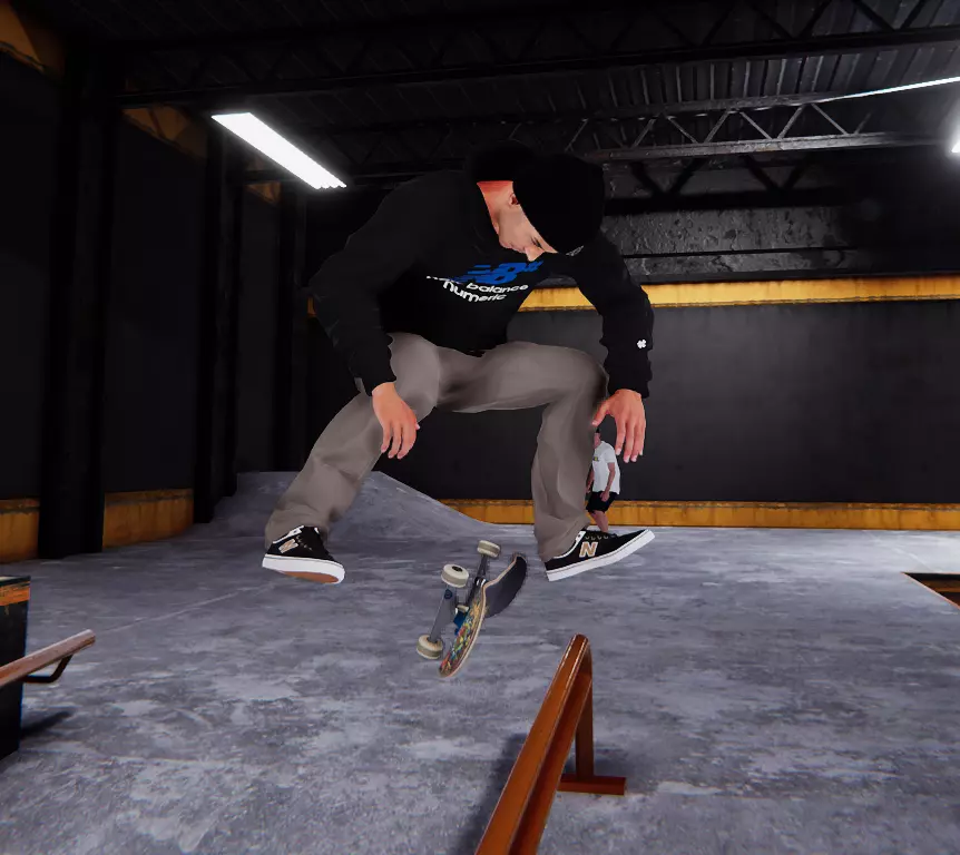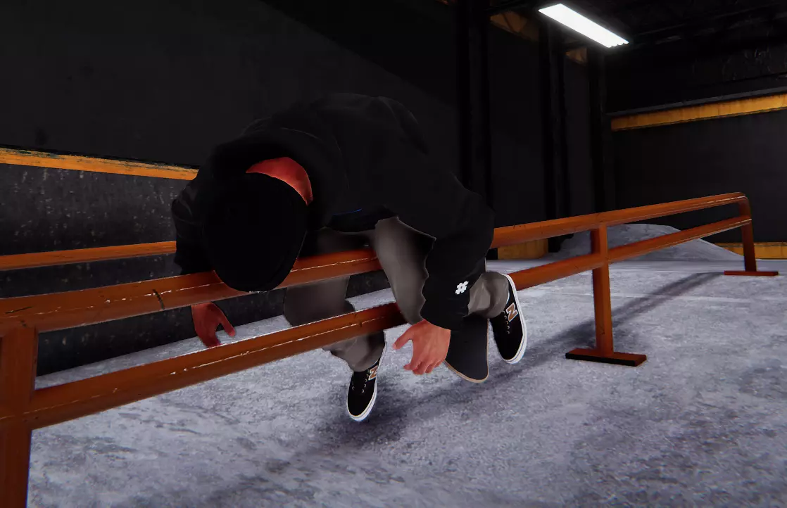栏杆很喜欢,你也很喜欢,现在你们俩都开心了。 不过等等,栏杆还想让你更厉害! 现在,这个新增的技巧能让你完成180度转身。 按住右扳机键(或左扳机键)可以在空中转动身体,你甚至可以提前按住来加快转身速度。