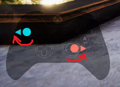 然后像这样向外轻拨摇杆。现在,这一点非常重要——你必须保持摇杆的位置,这样你的双腿才能保持张开状态。