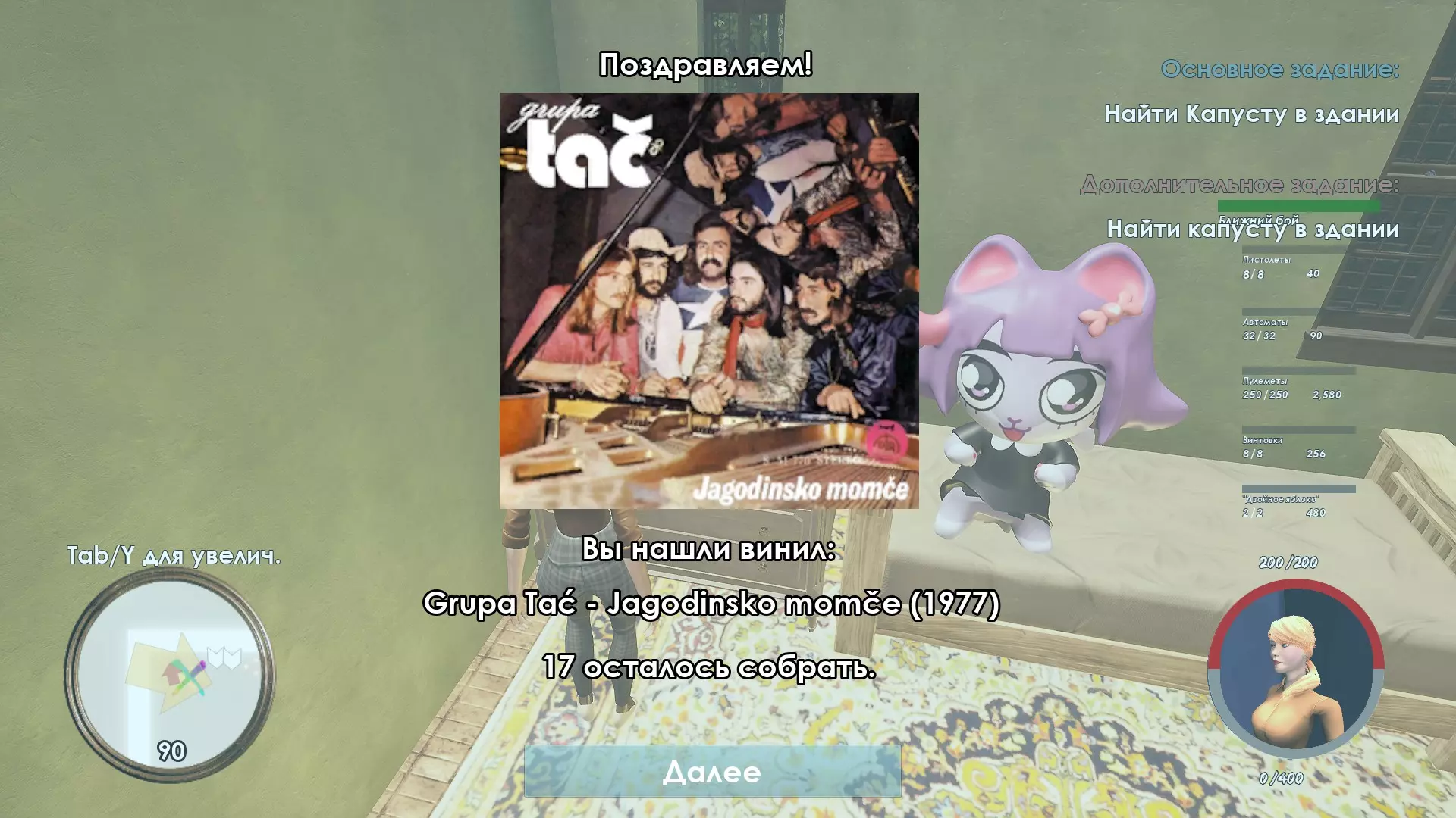 5. 第五块唱片位于“卷心菜”房子的二楼,在有巨大猫玩偶的房间里。第二章。