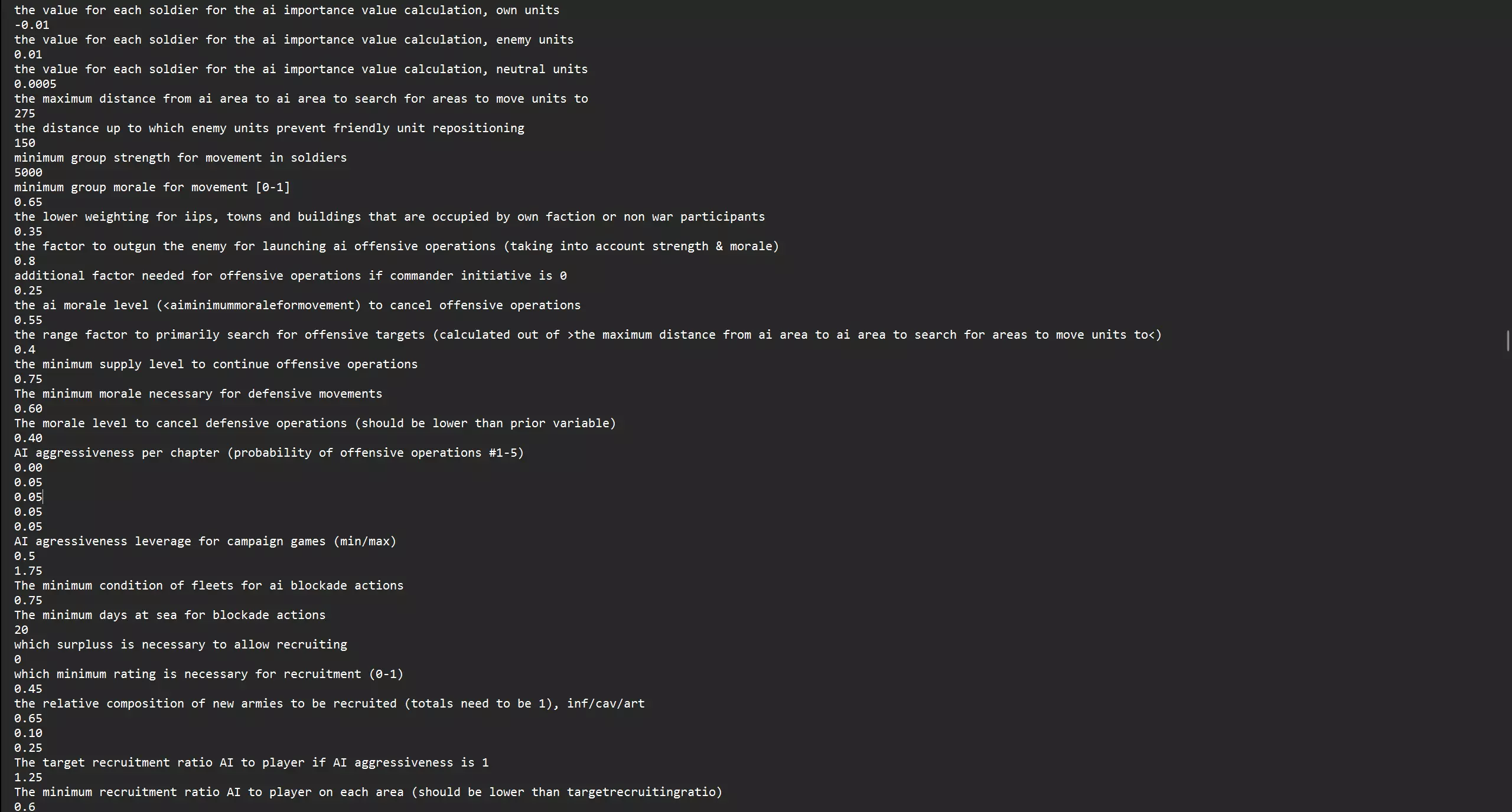 图2 打开其中任意一个,你会在图2中看到大量文本 根据你的需要编辑任何数值 重要提示! 编辑完成后,若要使修改在游戏中生效,需将你刚刚编辑的文本文件另存为副本并覆盖原文本文件。