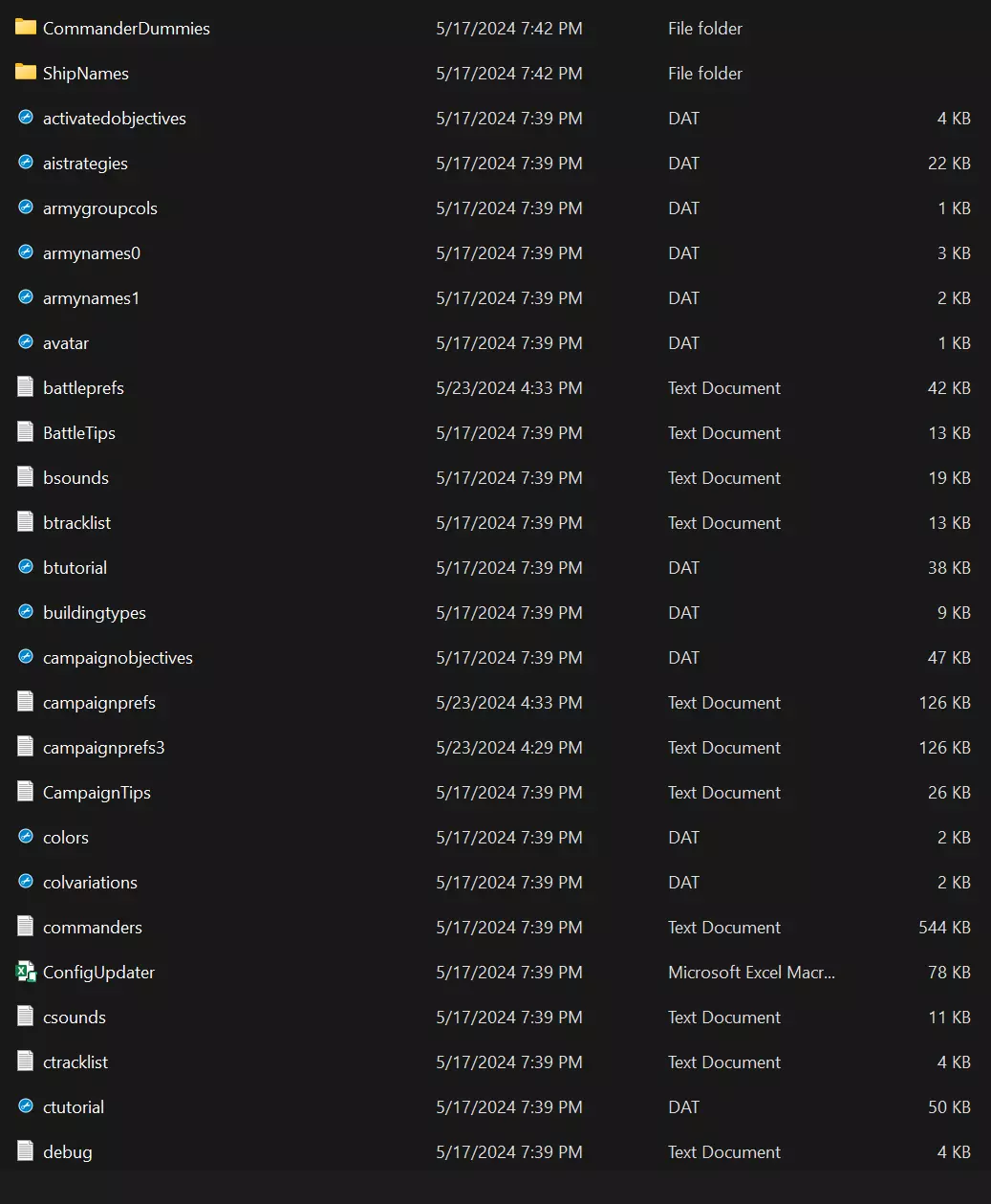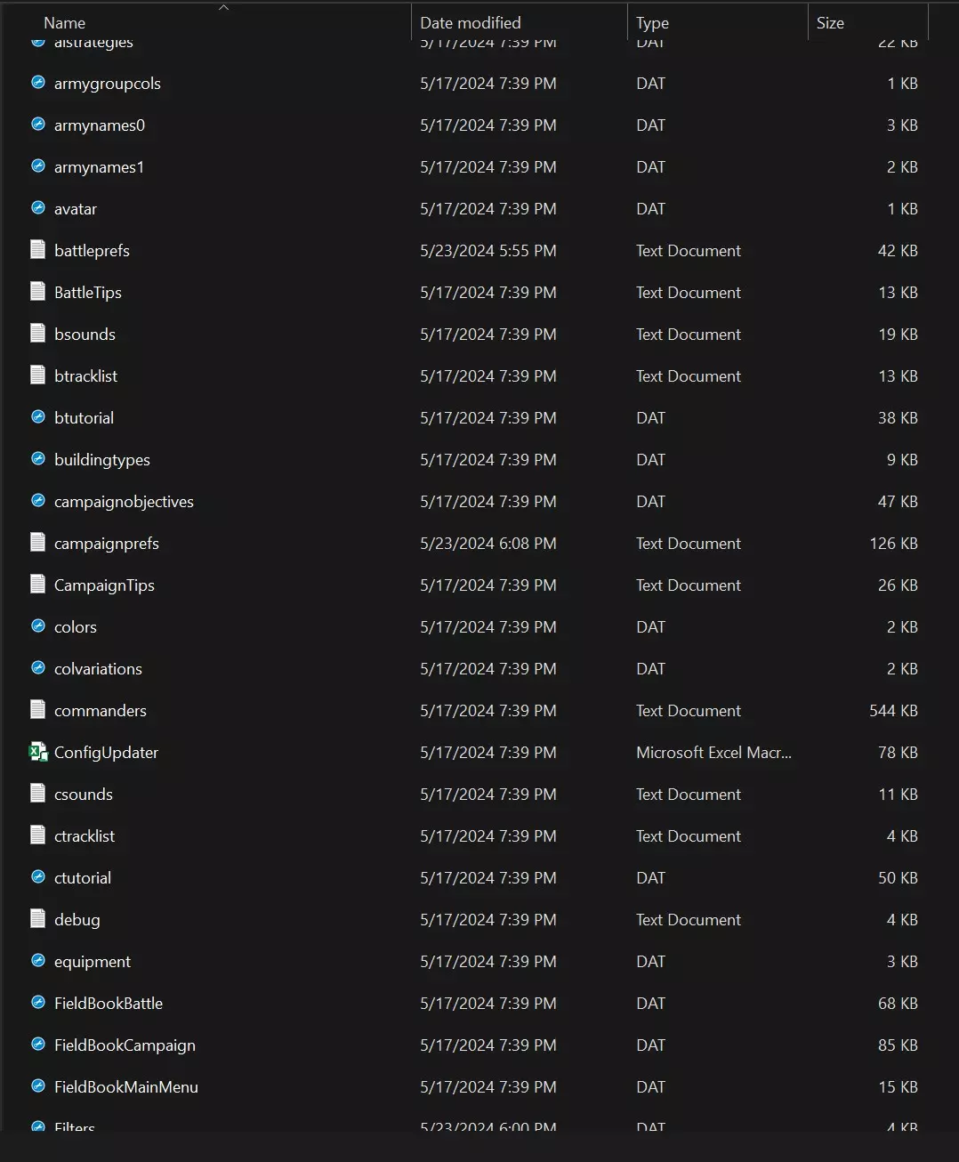 任何文本文档均可编辑,但主要需关注的两个文档是【战役偏好设置】(campaignprefs)和【战斗偏好设置】(battleprefs)。