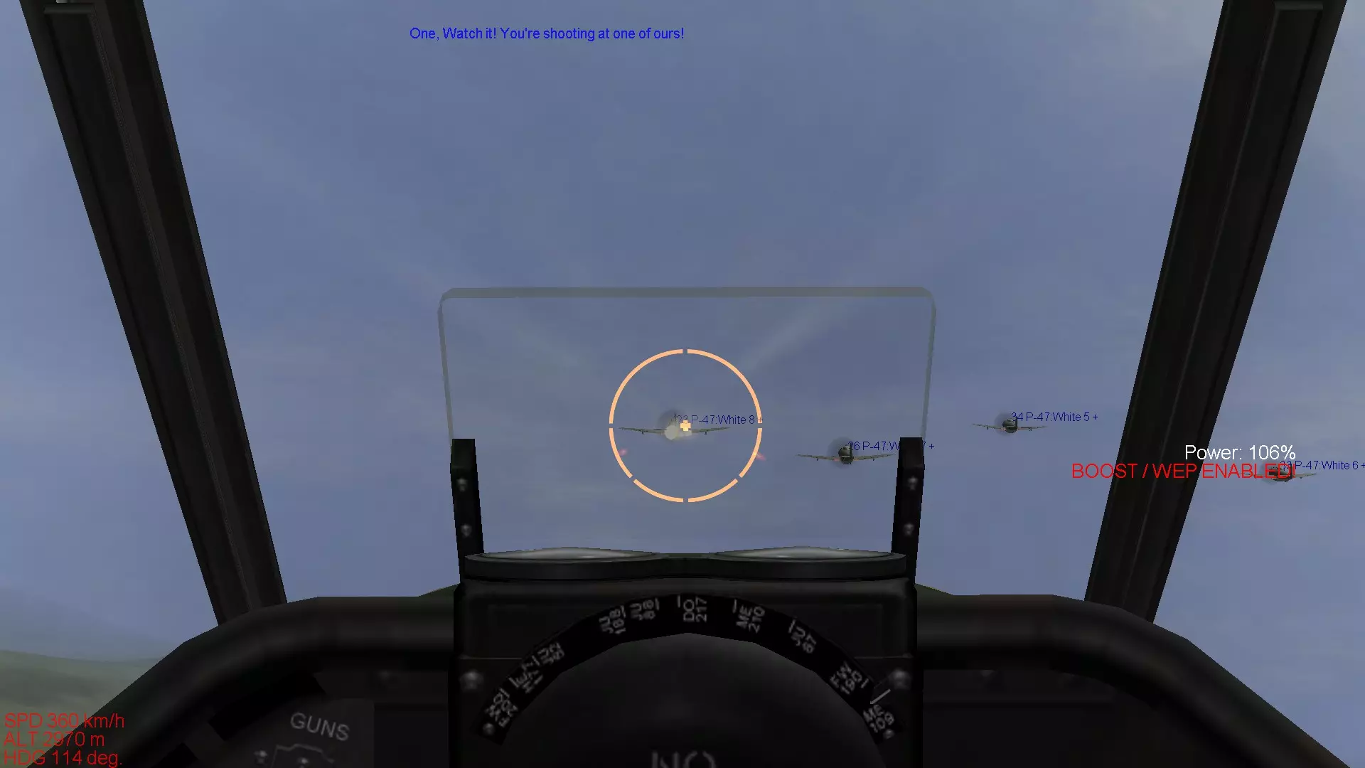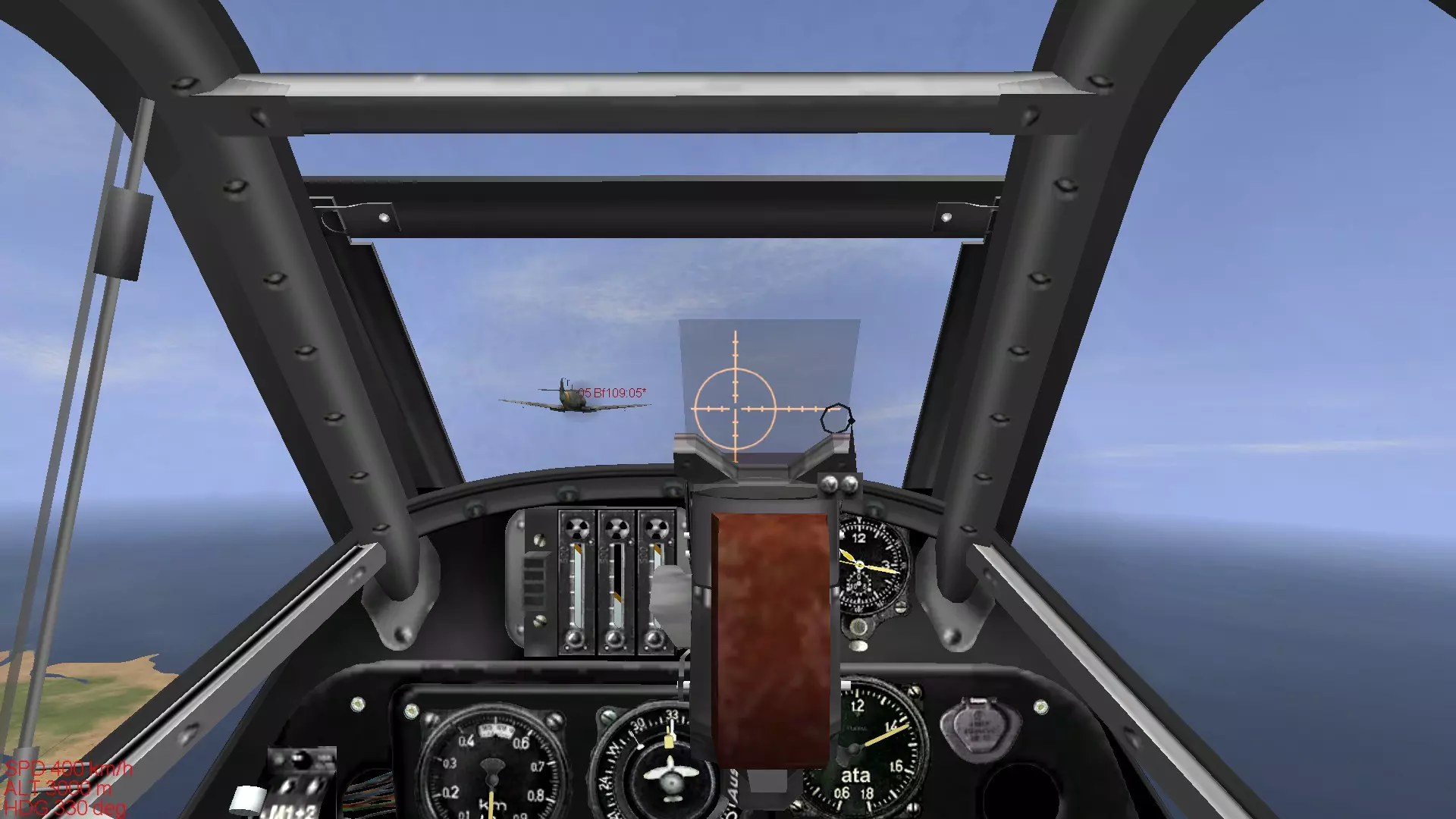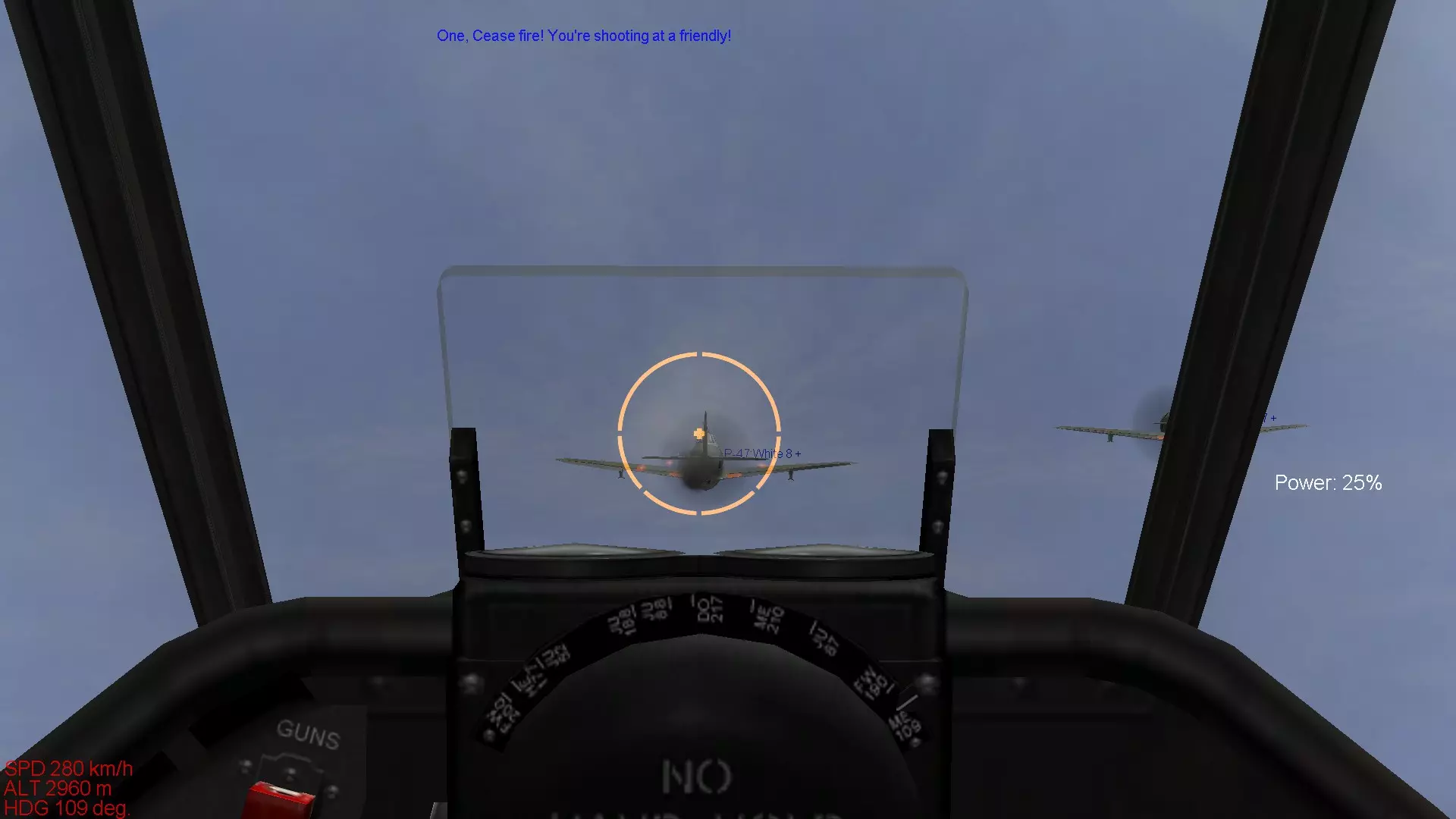 这是英国皇家空军(RAF)引以为傲的独一无二的战斗机。虽然不能推荐给新手驾驶,但它既不像零式战斗机那样面向老手,也不像La系列那样极端强大,因此我认为比驾驶那些机型要好得多。飞行特性与零式战斗机比较接近,武器装备也属于标准配置。不过,当提高发动机输出时,机体总是有上升的趋势,即使在转弯时机头也容易比预期抬得更高,操控上有一些小毛病。在进行仪表飞行的同时控制机体姿态进行飞行相当困难,Mk.在IX型以前的型号中,存在负过载时发动机会出现“呛油”的问题,如果持续施加负过载,最坏情况下会导致发动机熄火,因此不太适合新手。 方位磁罗盘由于游戏本身的设计,位于非常难以看清的位置,所以在使用全真模拟设置飞行或进行仪表飞行时,需要特别注意这一点,操作起来会比较费力。 另外,其中Mk.IX的25磅系列机型拥有与La-7相当的性能,但如果一直驾驶该机型,容易像长期驾驶La-7一样,过度依赖机体性能,这一点也需要留意。喷火战斗机需要你理解它的特性并进行精准操控,才能发挥出出色的格斗性能,所以要熟练驾驭它需要相当的耐心,但喜欢英军战机的玩家不妨努力训练,力求熟练掌握喷火战斗机。 它的起降性能和Bf109一样,起落架比较脆弱,因此需要进行稳定的起降操作。 舰载机型海喷火的着舰难度在IL-2系列游戏的着舰操作中属于顶级,想要提升着舰技术的玩家可以尝试一下。虽然上述机型不推荐给新手,但这仅仅是我个人的建议。如果你真心喜欢这些机型,并且有决心通过练习来熟练掌握它们,那么完全可以选择驾驶。最重要的是保持动力,与其在不喜欢的机型上反复练习,不如用自己喜爱的机型尽情练习,这样对心理健康更有益。我个人非常喜欢Bf109,一直用Bf109进行练习。当遇到瓶颈时,我会反思自己的不足之处,重新阅读推荐机型和不推荐机型的介绍,希望这能成为大家提升技术的方法。 那么,关于机型介绍的部分就到此结束了。 从下一部分开始,我们将进入真正的空战技术相关内容。 首先会介绍空战所需的技术,包括编队飞行的重要性,以及使用机枪进行射击的技巧。编队飞行的基本 一提到螺旋桨战斗机的空战,大家首先想到的可能就是紧紧跟在敌机后方进行射击的画面。 实际上,要跟在敌机后方是非常困难的,必须综合判断自身与对方的速度差异、双方的转弯性能差距,以及射击角度是否合适等。 而编队飞行中的速度控制和姿态保持,正是实现对敌机尾追的基础。虽然长机和僚机的职责要求略有不同,但本节内容并非讲解作为长机时的编队飞行方法,而是以2至4号机的视角,介绍如何将自身战机引导至敌机后方所需掌握的技术。因此,阅读本解说时,请将自己置于跟随长机的僚机立场。 当然,当你作为长机飞行时,也需要注意速度控制和姿态保持,以确保僚机能够稳定跟随。本节将介绍编队飞行的基本内容,掌握这些内容对提升上述提到的操控技术,以及后续章节中介绍的空战战术都有重要影响。不过这只是其中的一小部分,后续章节还会介绍许多以编队空战为前提的内容,所以请务必牢记。 在现实中,编队飞行是空战的基础中的基础,当然在游戏《伊尔2:1946》中,编队飞行也能带来诸多好处,让我们认真学习吧。