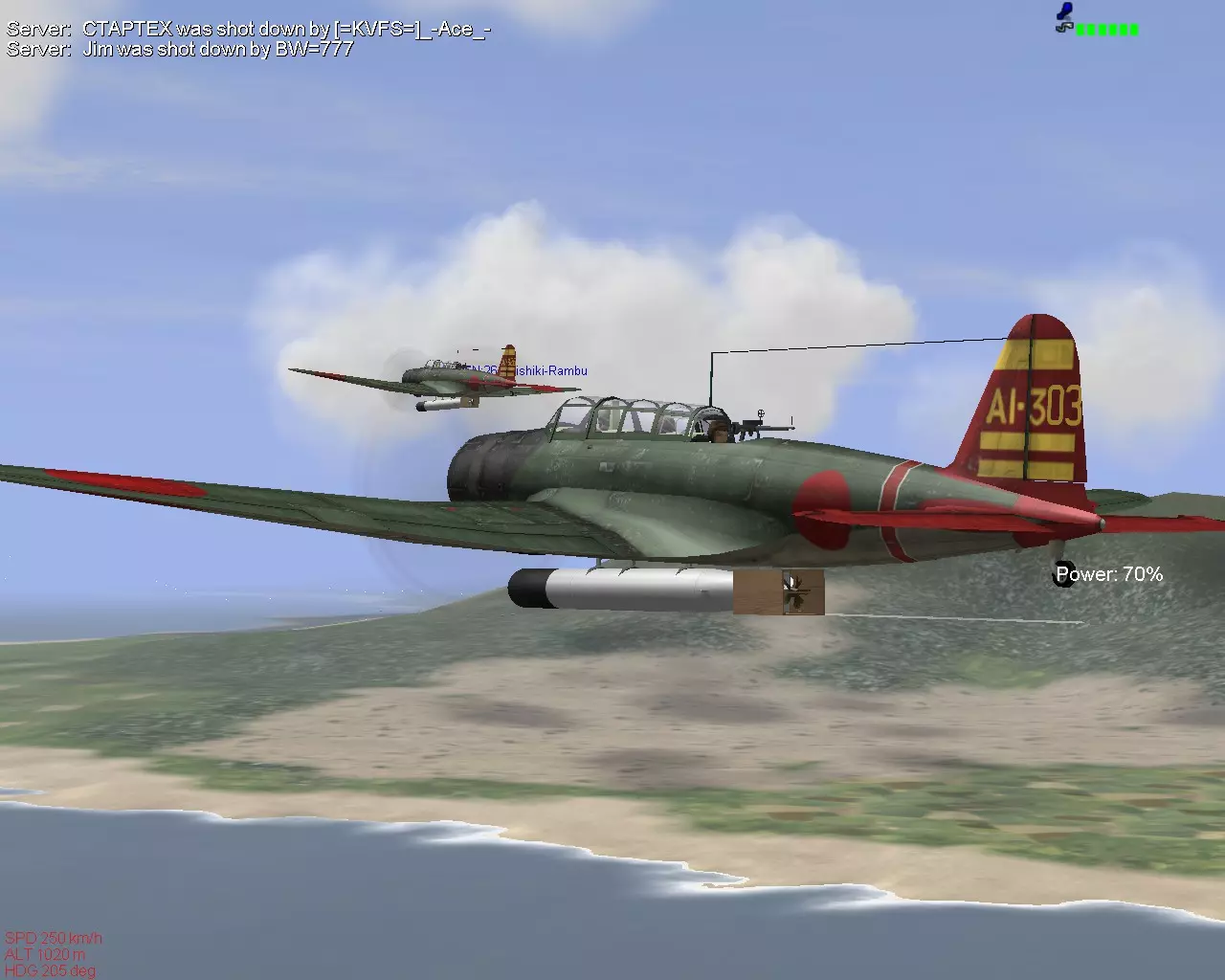 零式舰载战斗机(以下简称零战)是一款兼具极其出色且无明显缺陷的操控性与机动性的优秀机型。该机型重量极轻,爬升性能十分出色,在低速状态下的稳定性和转弯性能,在1000马力级别机型中无疑是最为优秀的。仅从驾驶角度而言,它非常容易上手,同时其起降性能也极为优秀,因此在这些方面也是一款非常容易驾驭的机型。然而,零式战斗机在空战中对于新手而言是一款极难驾驭的高手向机型,需要出色的操控技术以及将敌人拖入自身有利战术节奏的忍耐力和判断力。其一大特点是抗弹性能极差,即便拥有优秀的盘旋性能,若新手不熟知规避敌方炮火的技巧,在遭遇敌方高速俯冲与爬升的反复攻击时,很容易陷入被单方面持续攻击并迅速被击落的境地。(历史上,随着飞行员熟练度下降,零式战斗机的威胁也大幅降低。)此外,机体强度较低,俯冲性能也非常差,这些特点对新手来说意味着要承担极高的风险。俯冲并高速逃离是非常有效的逃生手段,但零式战斗机即便获得了较高的高度,在多数情况下也会遇到其他机体俯冲性能更优的状况,因此无法通过俯冲来逃脱。俯冲性能不佳不仅会在进行一击脱离等高速攻击时受到速度限制,想要追尾通过俯冲逃离的敌人也会变得极为困难。尤其是到了后期,敌方战斗机的速度越快,这种差距就越明显。 像这样,零式战斗机虽然是一款优秀的战机,但如果不能充分了解其机体特性,也没有足够的技巧将空战拖入能发挥自身性能的领域,那么驾驶它进行空战会非常困难。 要在空战中驾驭好零式战斗机,关键在于耐心和瞬间的判断力。攻击时,不仅要保持空战基本的高度与速度,做好能量管理,还要时刻注意零式战斗机在速度方面的限制。俯冲发起攻击时,需瞬间判断诸多要素并迅速做出决断,比如速度是否过快、能否高速转弯咬住敌机尾部,以及能否安全脱离等。当自身遭受攻击时,要利用机体的转弯性能,保持能以最小半径转弯的速度,同时冷静持续地躲避敌方炮火,诱导敌人犯错;如果敌人没有失误,就需要有一边躲避一边思考如何成功逃脱并付诸行动的忍耐力。 一旦能够熟练驾驶,这会是一架非常有趣的机体,也能真正理解为何零式战斗机在登场初期会令人畏惧。 虽然机型不同,但一式战斗机“隼”也具备与零式战斗机相似的特性,因此基本可以按照零式战斗机的方式来操作,同时了解两者在武器和转弯性能上的差异就好。拉沃奇金系列(La-5FN、La-7)