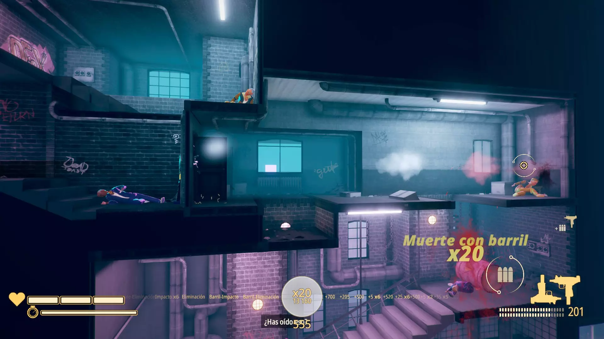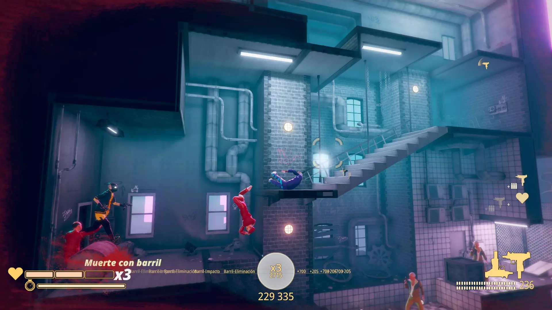 桶扫千军 用桶消灭一个敌人。这个成就是几乎无法避免的。敌人必须死于桶,无论是桶砸到他头上还是撞到他身上。我推荐【旧城】章节的第4关。敌人死亡时会显示“muerte con barril”的提示。