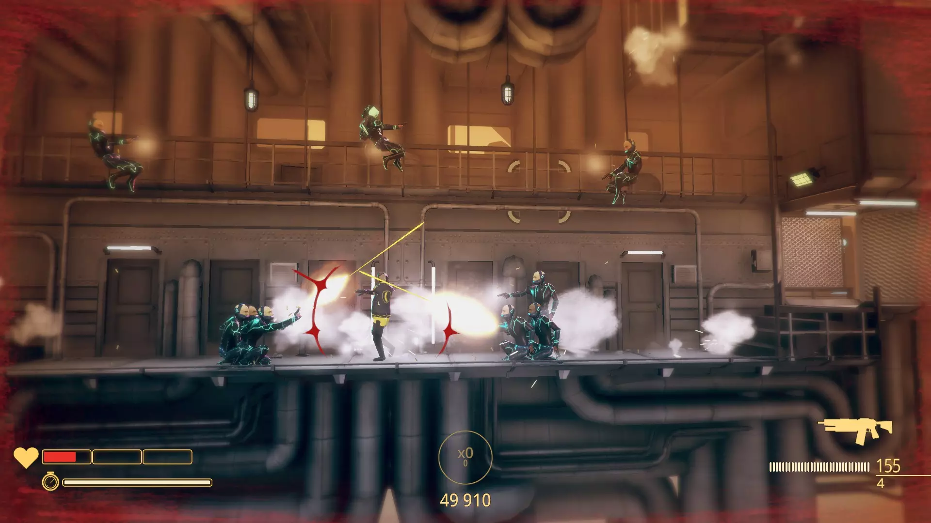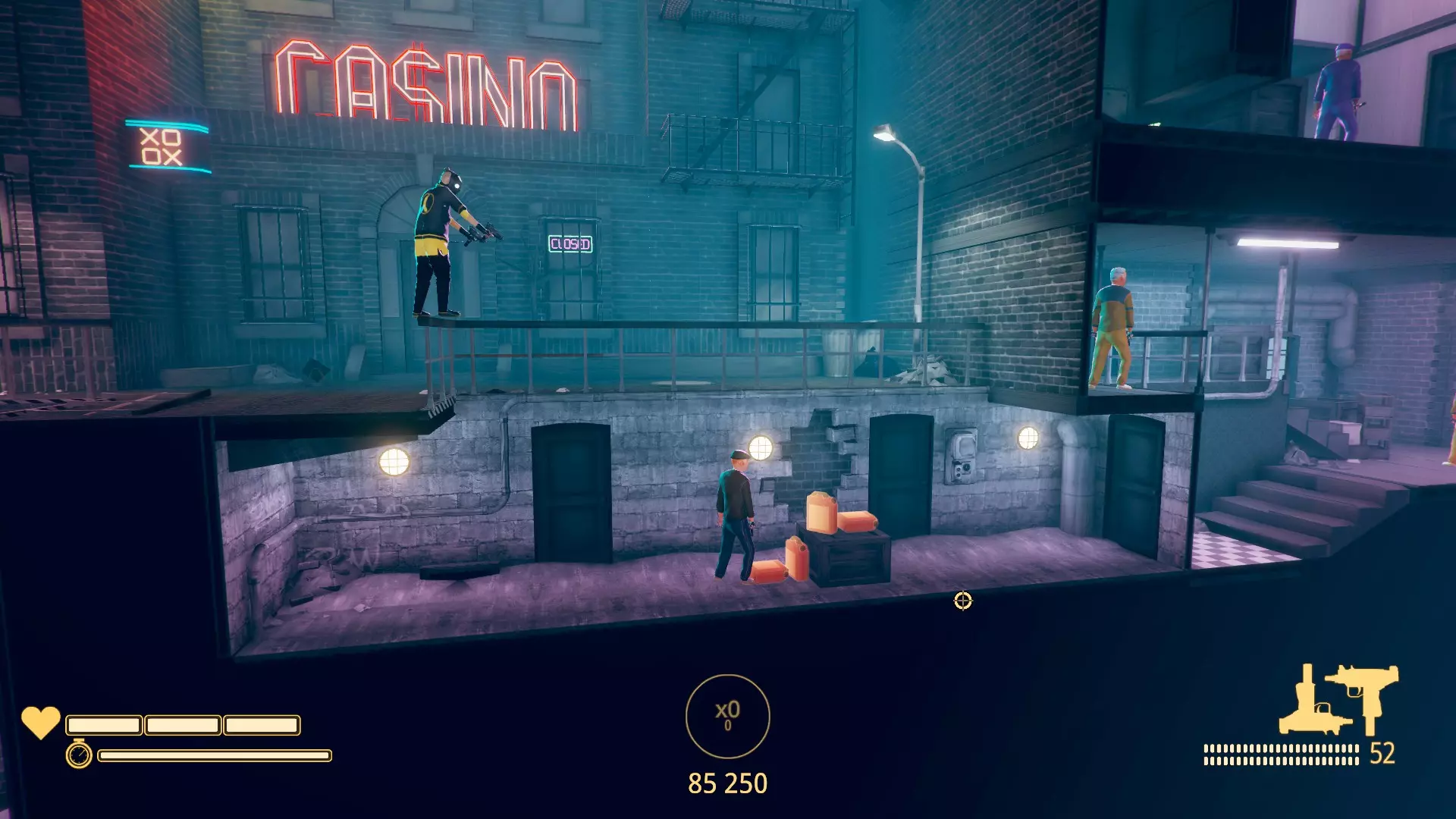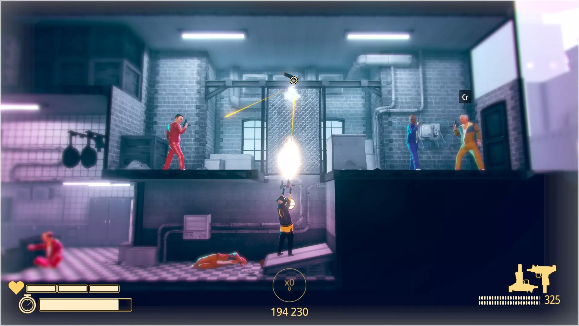 S大师 在所有关卡中获得S评级。没错,要达成这些成就你需要付出大量的坚持,你必须以S评级完成所有关卡,这意味着你几乎要做到完美。 通用建议: 学习关卡:了解如何在关卡中移动、敌人的位置、如何以及何时消灭他们等。 保持当前连击:通过闪避避免被击中,并快速推进消灭所有敌人。 避免死亡:如果你死亡,重新开始关卡,不死亡会获得额外分数。 不过,损失生命值不会影响最终评级。部分关卡更看重速度而非消灭敌人的数量,例如【网络世界】第4关和【佩德罗的世界】第1关。 射击敌人但不将其击杀,能通过连击为你争取一些时间,有时时间会比较紧张,所以可以尝试利用这一点。 消灭所有敌人:每个关卡都有固定数量的敌人,若将所有敌人消灭,你将获得额外分数。 发挥创意:爆头、空中翻转、边闪避边击杀、利用爆炸、反弹射击、在桶中射击、踩滑板射击、从索道上射击、用霰弹枪摧毁敌人等多种方式,都能获得比单纯对身体射击三次击杀敌人更高的额外分数。在更高难度等级下游玩:在普通难度下可以轻松获得S评级,但在其他难度等级下游玩(显然会更困难)会为你带来额外分数。 如果你在接近关卡末尾时丢失了连击,不必担心,你仍然可以获得S评级。 重复游玩那些你觉得最困难的关卡几次,最终你会攻克它们,不要绝望,花几分钟时间再试一次。 子弹时间虽然会减慢游戏速度,但真实时间仍会正常流逝。特定成就 需在特定关卡或特定条件下完成的成就。