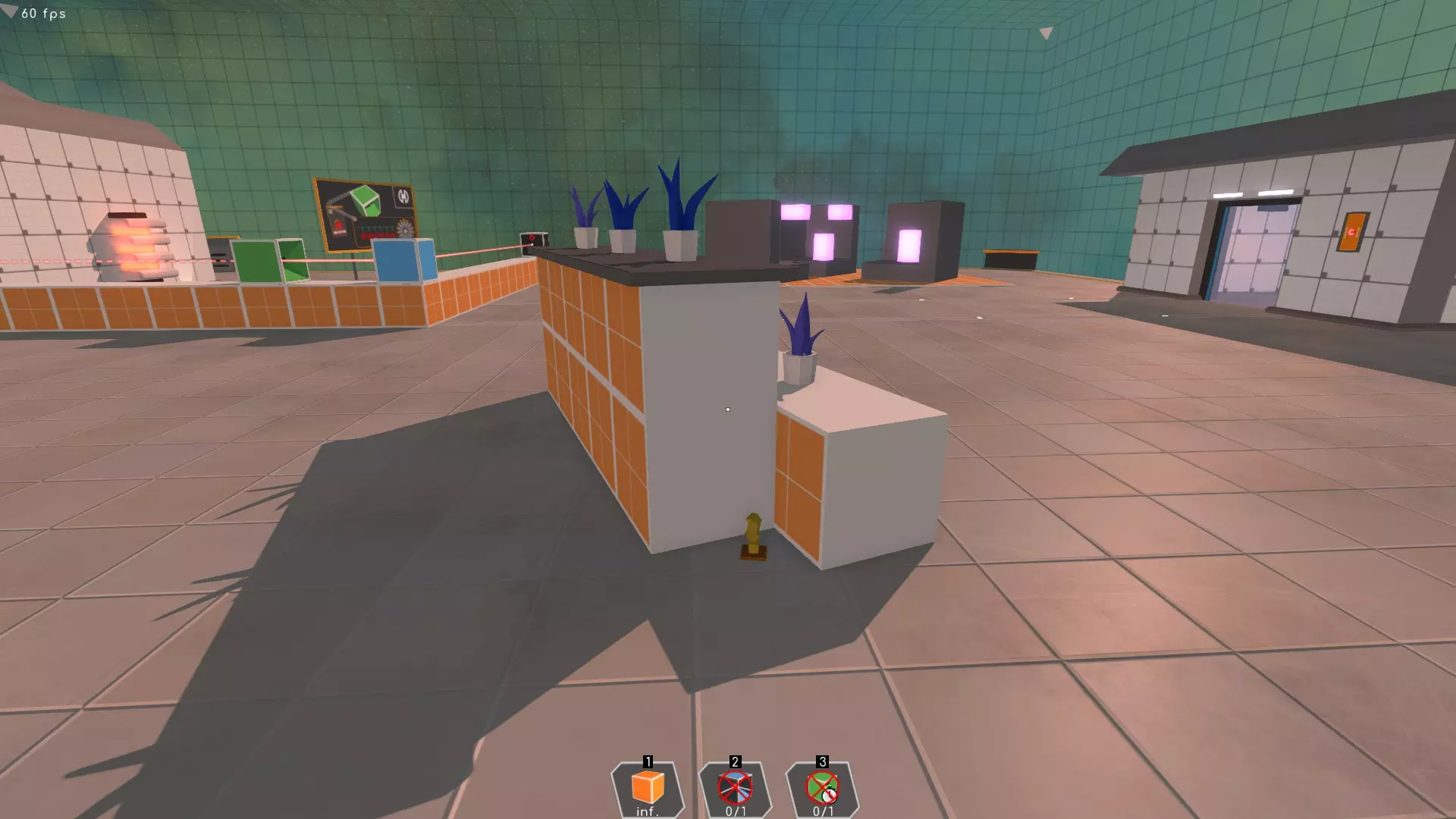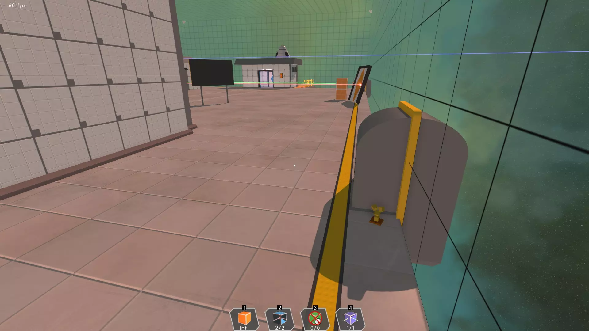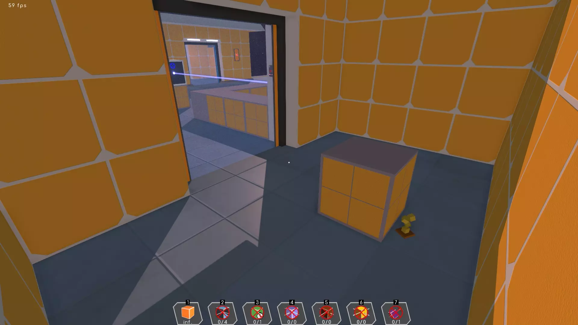 用蓝色激光打开门后,奖杯藏在橙色立方体后面。 成就#7 | 平台24