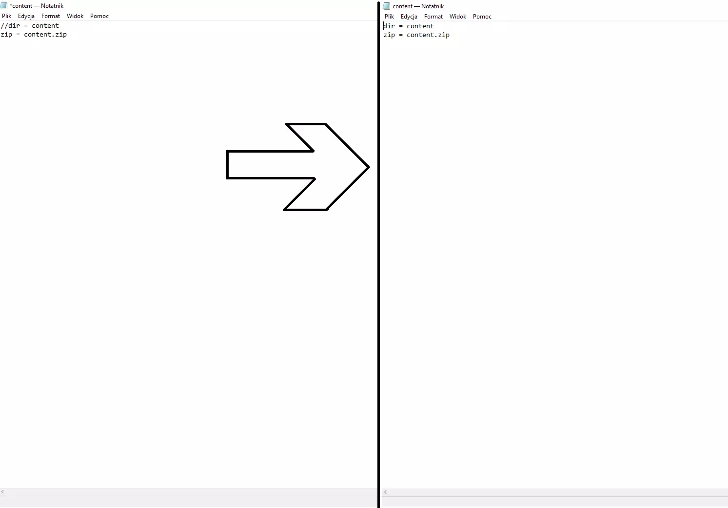 找到名为“content.txt”的文件,并用记事本打开它 2. 将第一行文本“//dir = content”修改为“dir = content”并保存(建议在此处创建文件的备份,以防出现问题)