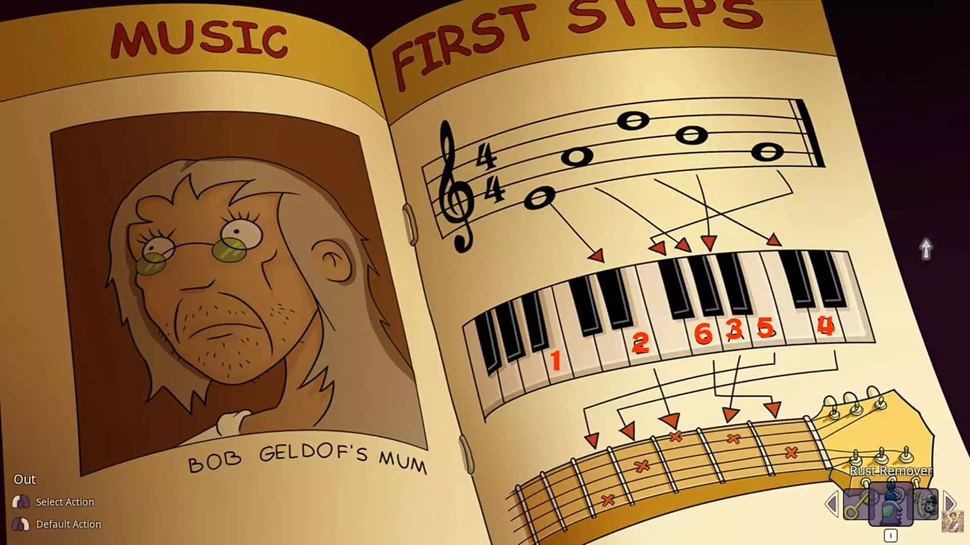 大垃圾虫 这里的一切都非常简单——详细描述具体要做什么、在哪里做没有意义,因为确实有很多行动的可能性。 在马塞尔医生的办公室里,你可以用番茄酱和芥末酱涂抹所有东西,用钢笔写字,用刀子划刻。 接下来——用番茄酱和芥末酱涂抹所有洗手池、画作和海报,用钢笔给肖像和海报涂色。