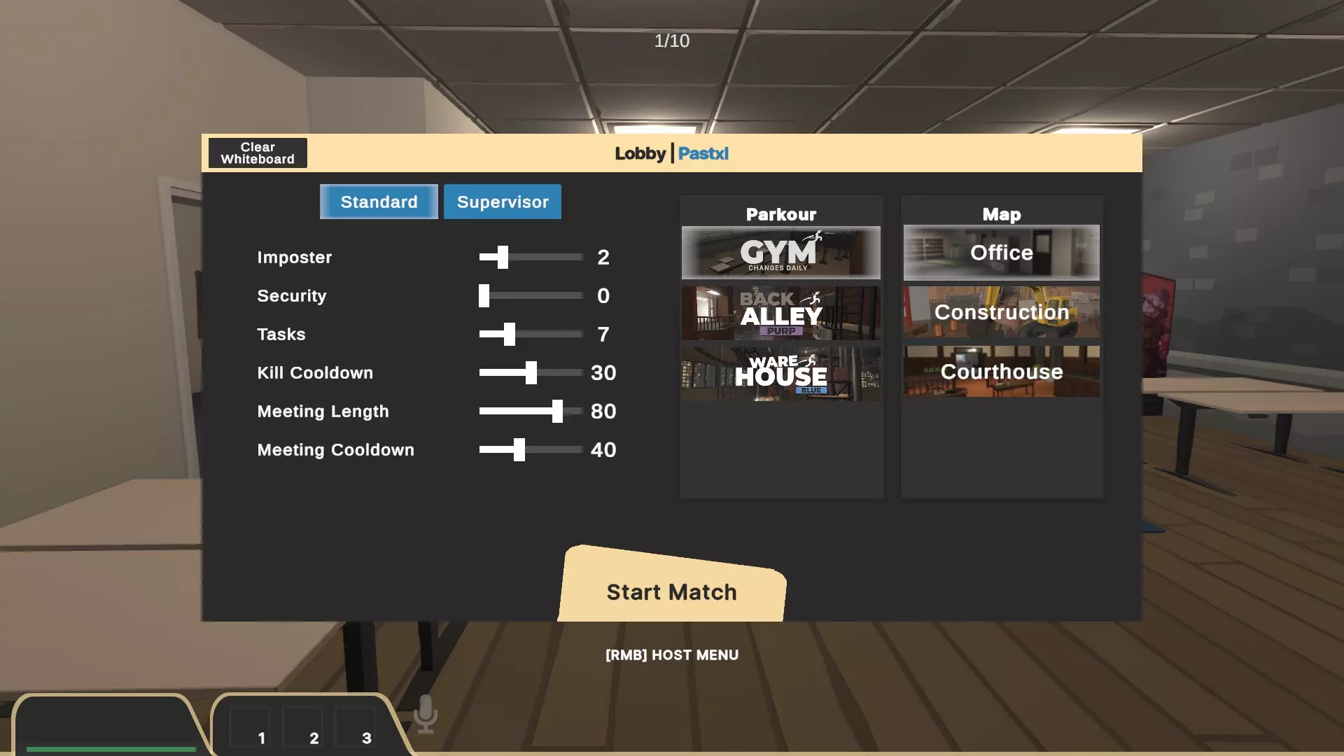 如何达成游戏中的成就(甚至是隐藏成就) 简介 你和朋友一起玩《Deducto 2》时,会发现与初代《Deducto》不同,这款游戏有成就系统,你可能会惊呼:“哇!我想把它们全都解锁!”我花了大约3个小时不停地尝试解锁所有成就,所以想和大家分享一下,就像我通常在Steam指南列表里做的那样。 这是《Deducto 2》完整的成就攻略,包括隐藏成就。 基础部分(游戏内成就) 基础成就可以在游玩过程中获得,和朋友们随意游玩就能解锁。 First Day On The Job:进行一场比赛,无论输赢都可以。 Job finished:在一场比赛中完成所有任务。 Office Politics(算作内鬼身份):被投票淘汰。 Senior employee I, II, III, IV, V: I. 进行5场比赛 II. 进行25场比赛 III. 进行100场比赛 IV. 进行500场比赛 V.游玩1000场比赛 快速刷取该成就的简单方法是,让两名玩家在游戏中都扮演内鬼并进行出生点击杀,游戏会将其算作一场比赛,这是获取该成就的快捷方式。 Round Robin 在每张地图各进行一场游戏即可,总共只有3张地图,难度不大。 Detective 在整场比赛中仅通过投票淘汰内鬼来赢得游戏。 Sneaker Intruder 作为内鬼赢得一场游戏,若确实需要,两人游戏的方法同样适用。 Target Down 作为保安击杀一名内鬼。 保安是游戏中的可选角色,需在设置中开启。保安会获得一把枪,任务是在投票淘汰内鬼之前找到并射杀他们。潜行突袭 用刀击杀一名角色。 impostors可以打开一扇红色的门,门后通往通风管道或前往其他区域的捷径,在那个房间里他们能找到一把刀。你只需用这把刀击杀一名角色即可。 大吉大利,今晚吃鸡 赢得25场比赛。 你可以以impostor、同事、保安等身份获胜,这些场次都将计入总数。 杀戮狂欢 在一局游戏中作为impostor击杀5名角色。 月度最佳员工 完成所有地图上的所有任务。 (你可以随着时间推移慢慢完成这个成就,但如果你真的想快速获得,再次进行双人刷任务的方法同样有效。) 特定地图成就(游戏内也有相关说明) 部分成就只能在特定地图上获得,以下是这些成就及其获取方法!法院地图成就 Swish 投进50个篮筐 在法院地图中,有一个任务要求你将2个球投进篮筐。如果你尚未获得该成就,就无法从侧边拿起球,但可以从地上捡起其他玩家掉落的球。站在篮筐正下方向上投篮即可算作一次成功投进,完成50次就能解锁该成就! Show Mercy 作为法官时饶玩家一命,将其送入监狱 在这张地图中,投票室位于法庭内,并且(如果没有管理员的话)法官会随机选出。当有玩家被投票出局时,法官可以选择将其处决或将其送入监狱。如果选择将其送入监狱,你将获得该成就,并且在游戏过程中可以去探望他们;如果选择处决,他们就会死亡。如果你不点击按钮,他们就会死 :D 直接进监狱 在法院地图中被投入监狱 和“手下留情”类似,但必须有人饶你一命并把你送进监狱,你可以恳求朋友把你送进去,或者寄希望于他们会大发善心 <3 建筑成就 嘭! 用汽油罐完成三杀 在该地图中,内鬼可以捡起汽油罐并将其当作炸弹使用,通过这种方式击杀3人即可获得该成就 办公室成就 潜行100 伪装状态下完成击杀 (目前存在bug,无法获取) 在办公室地图中,通过通风管道可以找到一个对讲机,它能让你伪装30秒,在伪装状态下击杀一名同事即可获得该成就 大厅(大厅成就) 此前在游戏中,你会进入一个大厅,在那里可以进行自定义设置、跑酷、射击练习和战斗,并通过这些活动获取成就。 关于所有跑酷成就:撰写本文时仅有3张地图,分别是灰色、蓝色和紫色(我知道有提到红色地图,但它无法选择)。要更换地图,房主需点击鼠标右键打开菜单,然后从中进行更换。