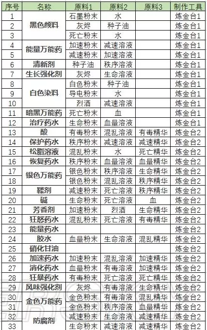 (炼金工作台Ⅱ) 最后附两张炼金配方