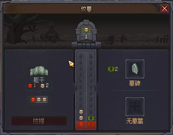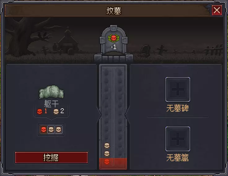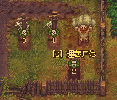 2.在墓园中埋葬尸体(通过埋葬尸体可获得埋葬证明,该证明能在酒馆老板处出售换钱,且经处理后的尸体下葬后会提升墓地的美观度)