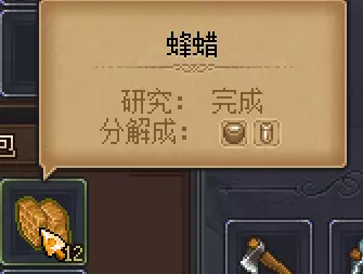 (例如研究啤酒花需要4个信仰与4科技点数) 在研究结束后,物品就会显示可以分解成哪种原材料,例如蜂蜡,研究后它显示可以分解成精华和溶液,然后我们再去蒸馏立方体与手动搅拌器处分解得到减速精华与减速溶液 (这里又有一个槽点,我都研究完了你直接告诉我什么物品分解出来是什么精华和什么溶液就得了呗,非得分解出来之后才能知道,或者到大后期做出僵尸炼丹术分解器才能直接看到 ,我到现在做炼金原材料时还是要看表)