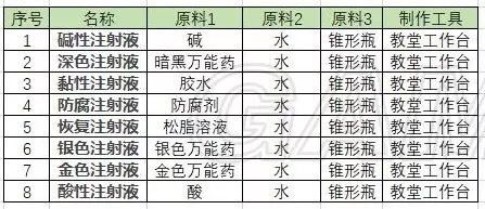 然后我们再来看看各种防腐剂的作用: 酸性注射液:-1【红】-1【白】 碱性注射液:+1【红】+1【白】 粘液注射液:+1【白】 防腐注射液:停止尸体的腐烂 恢复注射液:恢复尸体50%腐烂度 深色注射液:+2【红】 银色注射液:-1【红】+1【白】 金色注射液:-2【红】+2【白】(注意:有的朋友可能会疑惑深色注射液+2【红】有什么用,这是因为如果当尸体本身【红】数值不足时,是无法直接使用某些注射液的。例如当尸体的【红】为0时,就不能使用金色注射液。) 现在假如我们有一具3【红】6【白】的尸体,怎么处理让它变成12【白】呢?