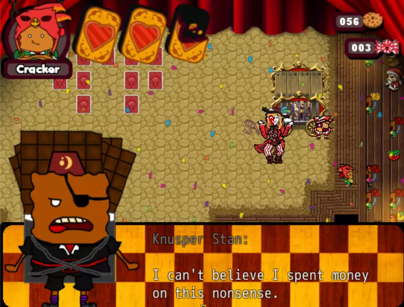 你必须与沿途所有角色对话,才能解锁博物馆中的角色。在女巫屋射中3个靶子可打开隐藏地窖。下去后,你会在两个房间里找到角色和物品(你需要女巫钥匙来解锁门,可从普拉琳处购买)。使用饼干来解锁它们。你必须拥有120块以上的饼干才能全部解锁。无需购买KFC鸡肉套餐即可获得此成就。这并不意味着“所有物品”之类的意思。击败最终Boss后,你应该在这里购买所有角色和物品。