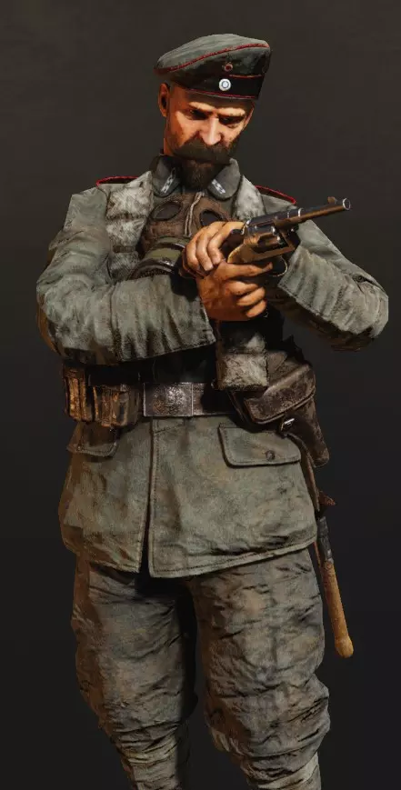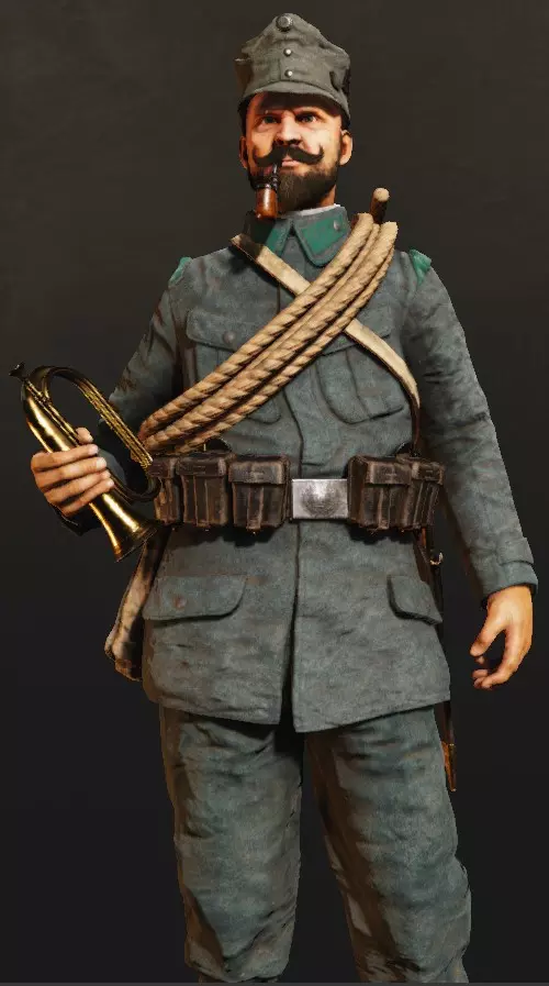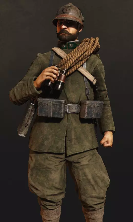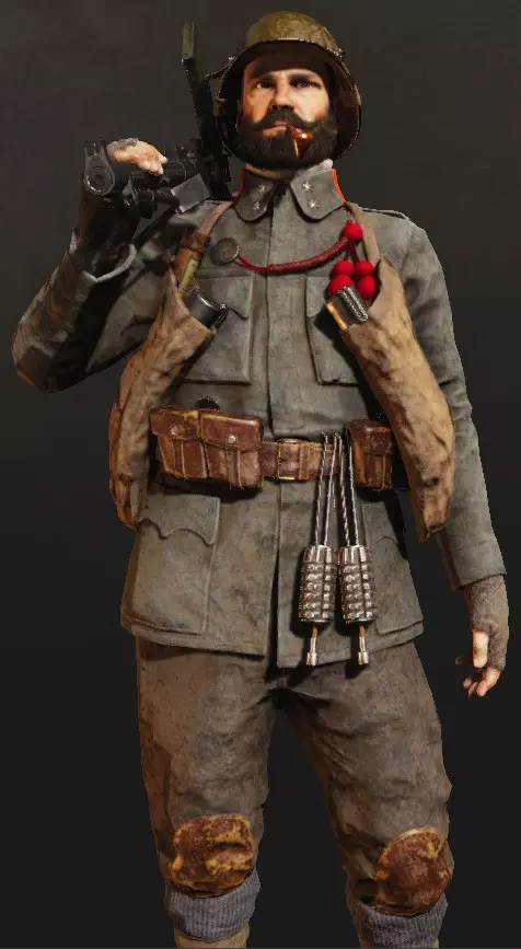 支援只会被呼叫到军官信号枪标记的位置(初始即可使用)。如何发射信号枪?你需要选择信号弹,打开地图,然后交互式地将射击点移动到你想要的位置。如果在短时间内射击两次,只有第二次射击的标记会显示,但作为回报,对任何现有标记的第一次呼叫会比平时更强(例如,毒气云持续137秒而非120秒,火炮射击5发而非4发等)。 在武器方面,军官的装备可以说比较一般。可用的左轮手枪有意大利的博代奥1889和泰托尼1916“ONA”,以及奥地利的拉斯特-加瑟1898和加瑟M。奥匈帝国的1870型转轮手枪和德国的帝国转轮手枪M1883:在同类武器中表现相当不错,射击稳定性尚可,但装弹速度不快,射速也并非顶尖。其他手枪包括:意大利的伯莱塔M1915、M1917、格利森蒂M1910和斯泰尔-哈恩M1912;奥匈帝国的弗罗默停止手枪、斯泰尔-哈恩M1912、罗斯-斯泰尔M1907;德国的鲁格P08、德雷塞1907、毛瑟M1914、毛瑟C96以及伯莱塔M1915。它们拥有较快的射速和相对快速的换弹速度(具体取决于种类),以及快速瞄准的特点,但击杀效率却不尽如人意,即便在近距离(远距离时威力则完全消失),尤其是弗罗默停止和贝雷塔这两款,而且它们很难操控(容错率极低),这使得这些武器仅限于近距离战斗,并且比步枪更依赖玩家的技巧。只有完成18级(德军为15级)的挑战(目前这个挑战难度很大),你才能获得步枪(卡尔卡诺、M.95)。也就是说,在达到18级之前,你的个人火力在通用性方面是相当有限的,嗯,这就是代价。你的支援装备栏仅有3个位置,分别是信号枪、望远镜和水壶: - 信号枪是用途最广泛且需求量最大的装备——你总是需要标记新的地点来呼叫支援或加强火力打击。 - 望远镜能让你远距离发现敌人,并为全队短暂标记他们的位置,但这会抢了侦察兵的活儿。偶尔会派上用场。 - 水壶是突击兵在支援技能充能时的选择。饮用后会获得一小段时间(45秒)的无限耐力(可以一直奔跑),并略微减少压制效果,这很有用。