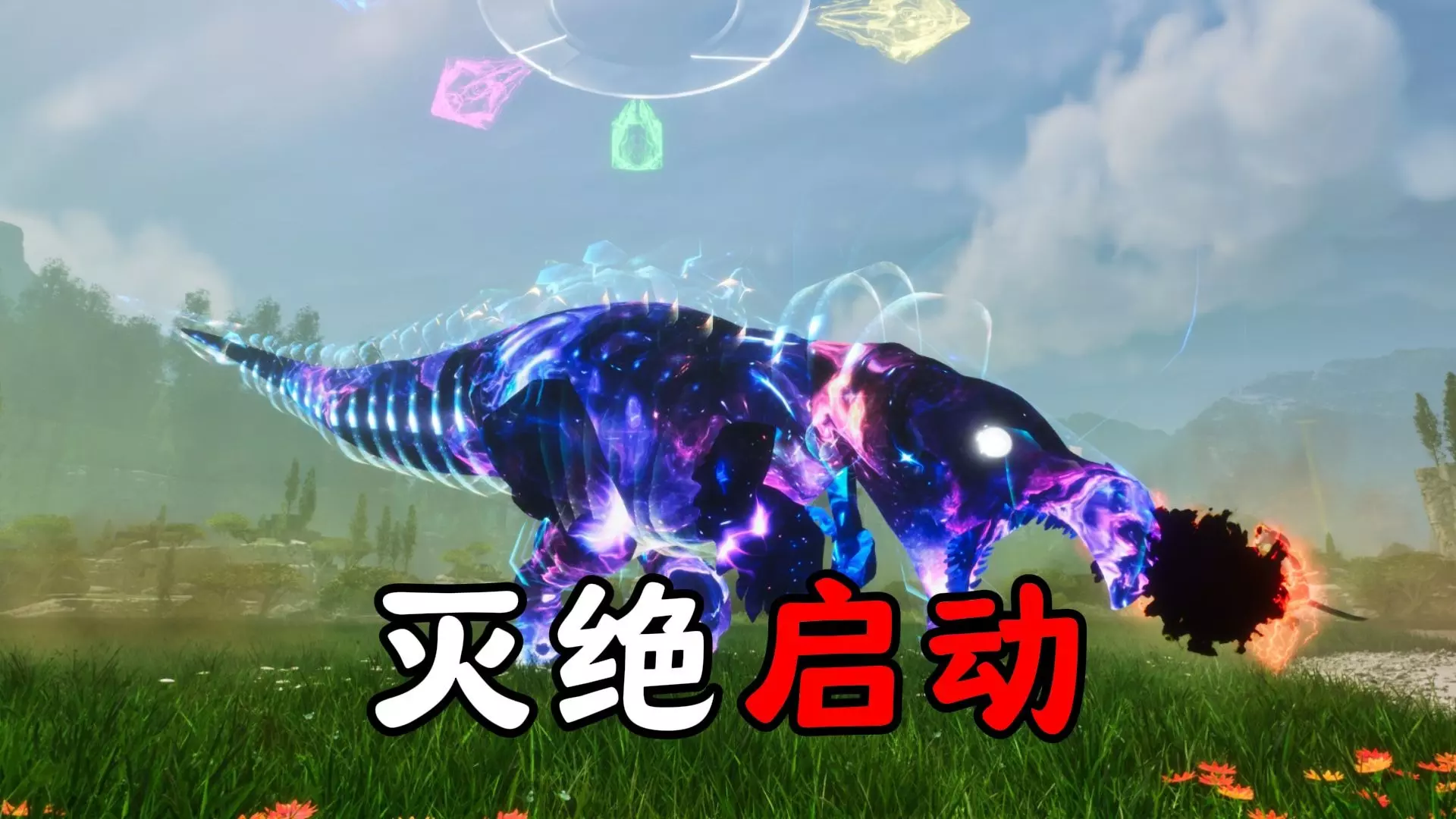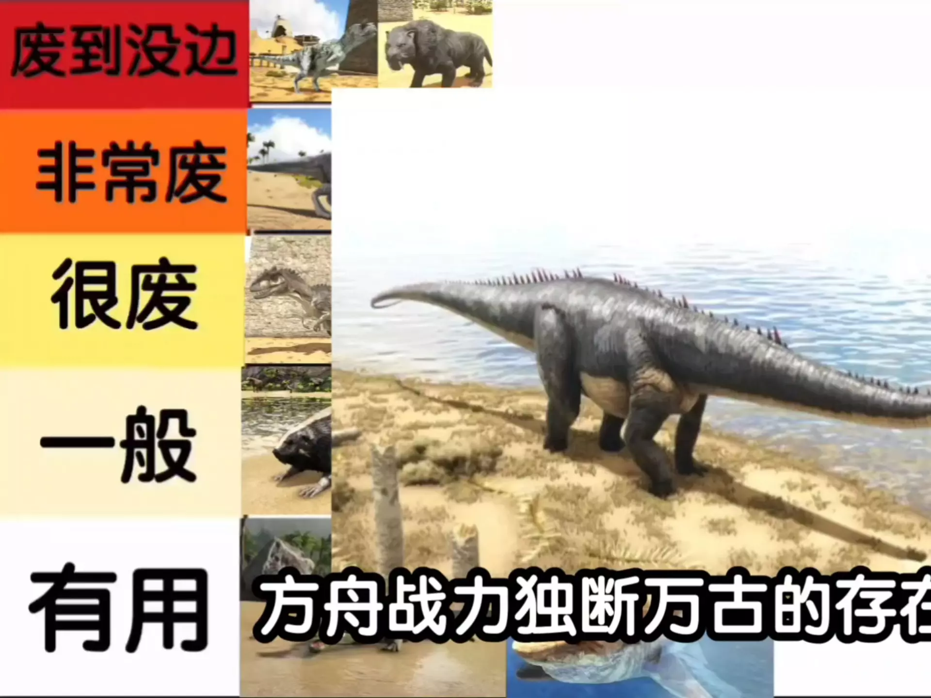 这是方舟游戏相关内容,介绍了被称为“小型轰炸机”的天体岩龙,展示了岩龙的外观,还呈现了玩家操控生物与包括岩龙在内的野生高等级生物战斗的游戏画面,体现出天体岩龙的战斗特点。