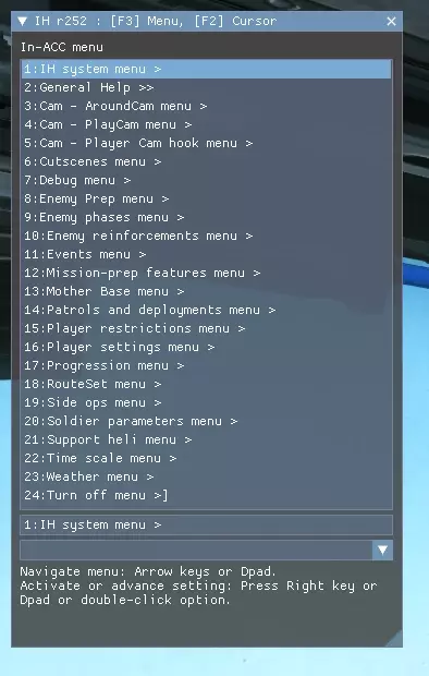《潜龙谍影V:幻痛》地面零点行动 - 地面零点行动任务 使用美国海军监狱场景,导入了《潜龙谍影V:原爆点》的任务数据,并在“幻肢”任务与母基地教程之间实现了流畅过渡。你还可以在iDroid中将“地面零点行动”作为第51号任务进行访问。 在IHHook中,你可以启用“出击”选项,这样就能以毒液蛇的身份并使用你的武器库进行游戏;否则,你将以大首领的身份使用《潜龙谍影V:原爆点》中的武器进行游戏。 请安装对应的语音包,选择如下: 若你安装的是英文版游戏,请安装【GROUND ZEROES Voice English b33.mgsv】 若你安装的是日文版游戏,请安装【GROUND ZEROES Voice 日本語 b5.mgsv】