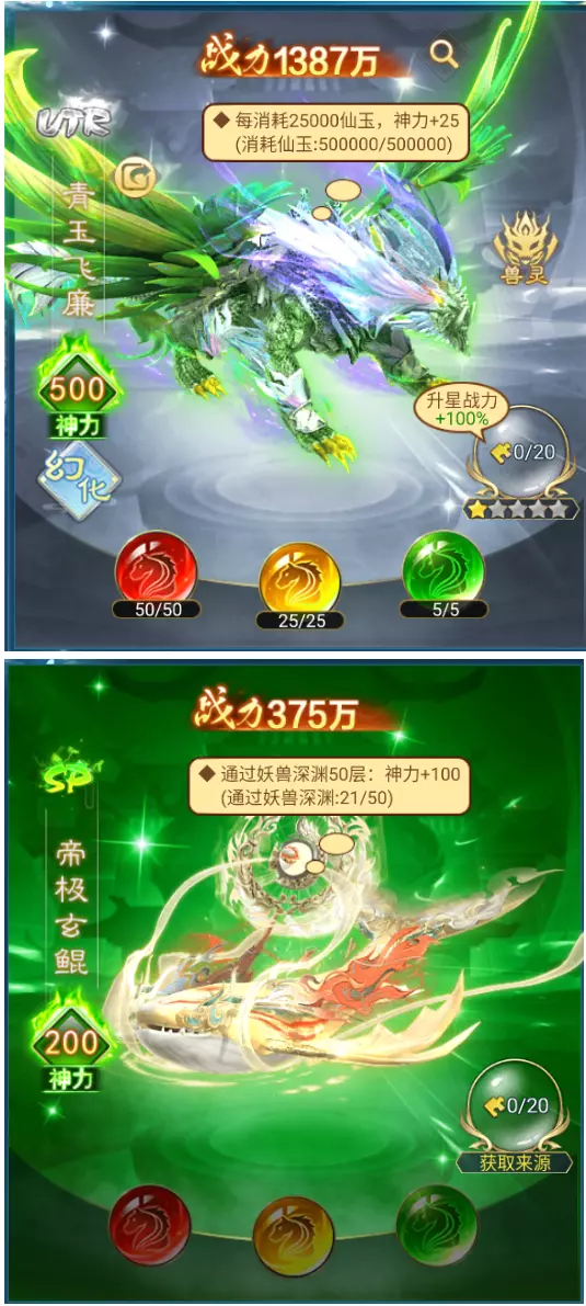 本文为《凡人神将传》玩家介绍兽灵激活方法:拥有神火碧焰凤、日曜离火凤等指定坐骑中的任意一只,即可开通兽灵系统,之后获取兽灵道具,在兽灵功能界面选择对应兽灵使用道具完成激活,还可通过炼妖等提升神力。