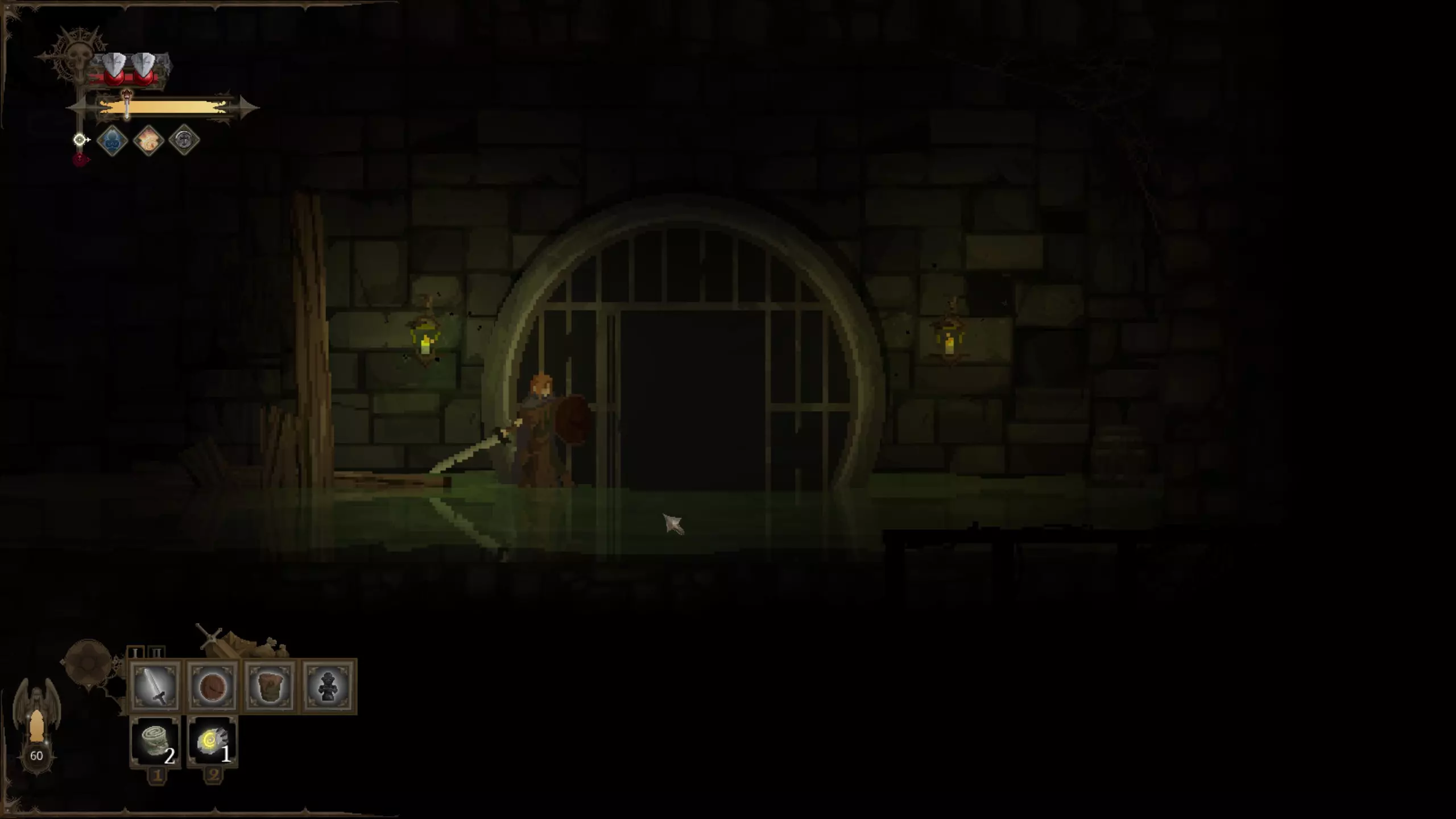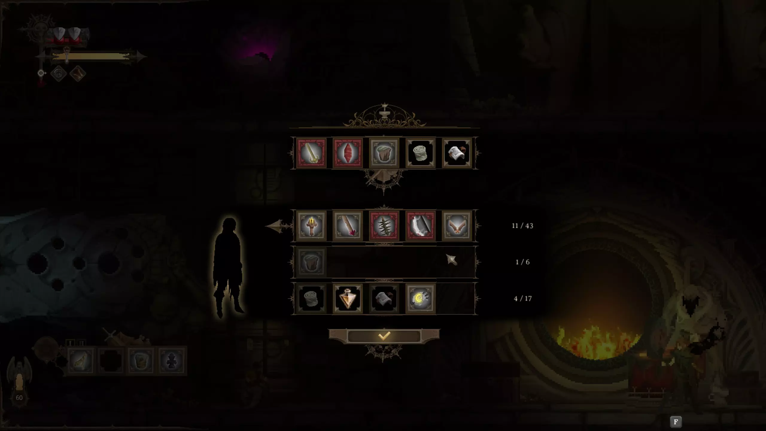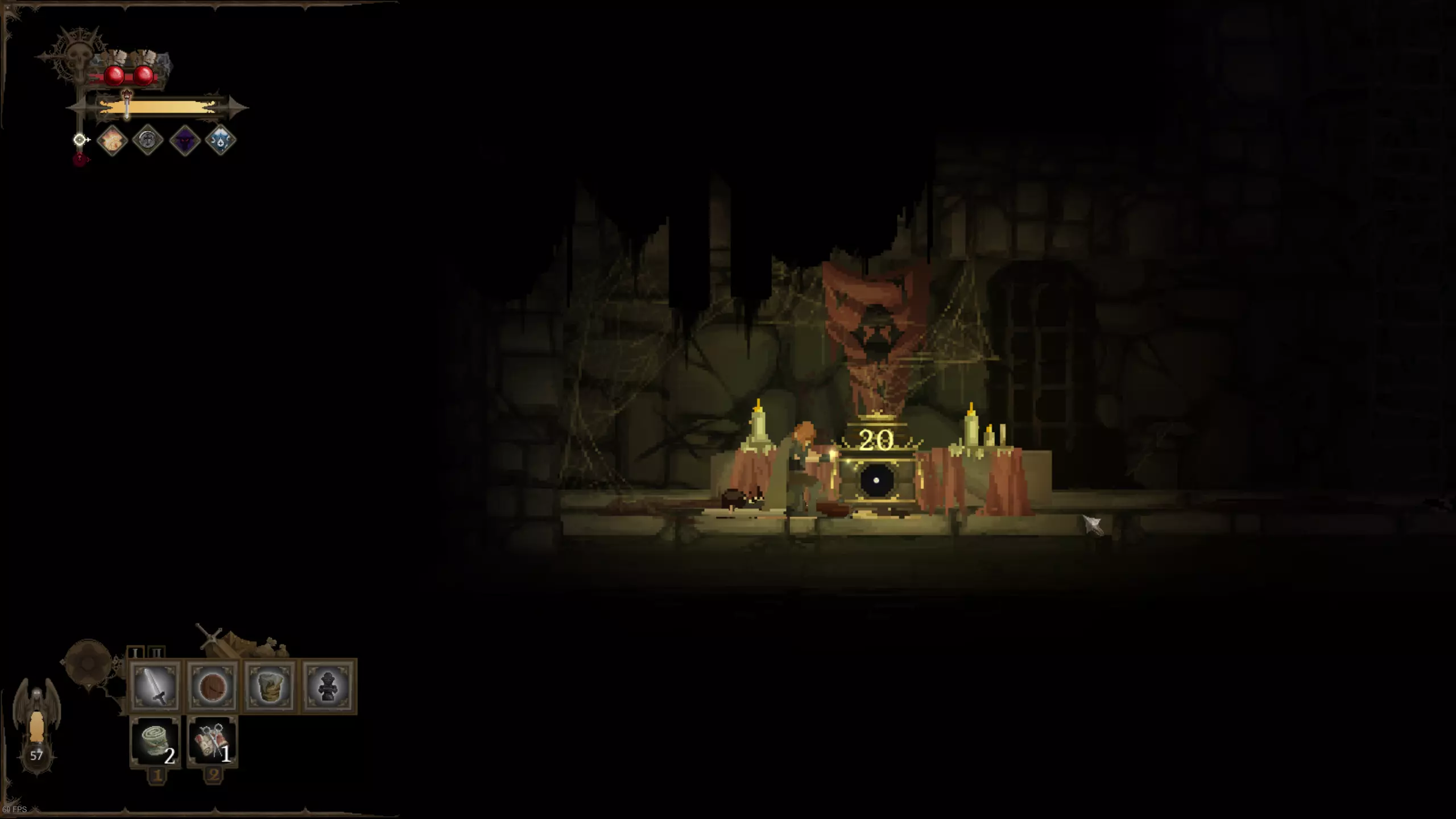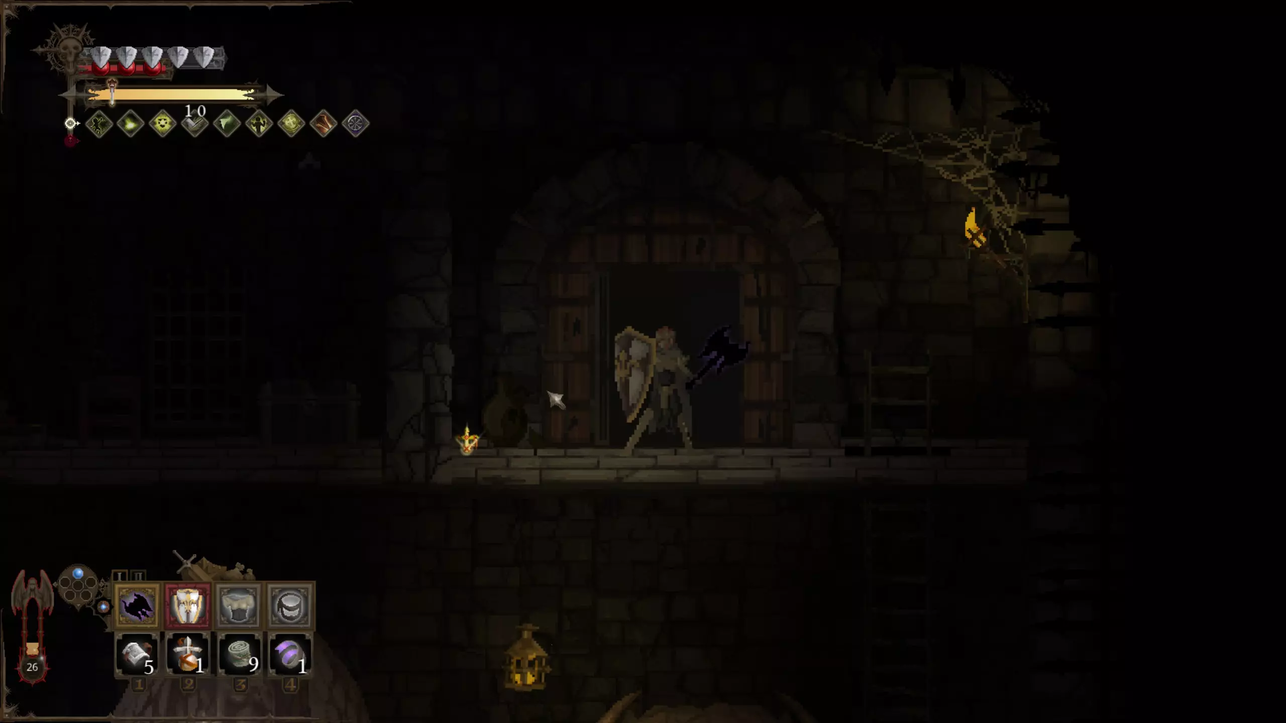 留意上下方环境 《黑暗献祭》中无法跳跃。但你时常需要向下探索,偶尔也需向上探索。利用窥视机制查看前方情况。按住上键或下键即可激活窥视功能,此时镜头会缓慢上移或下移,展现更多即将到来的区域。