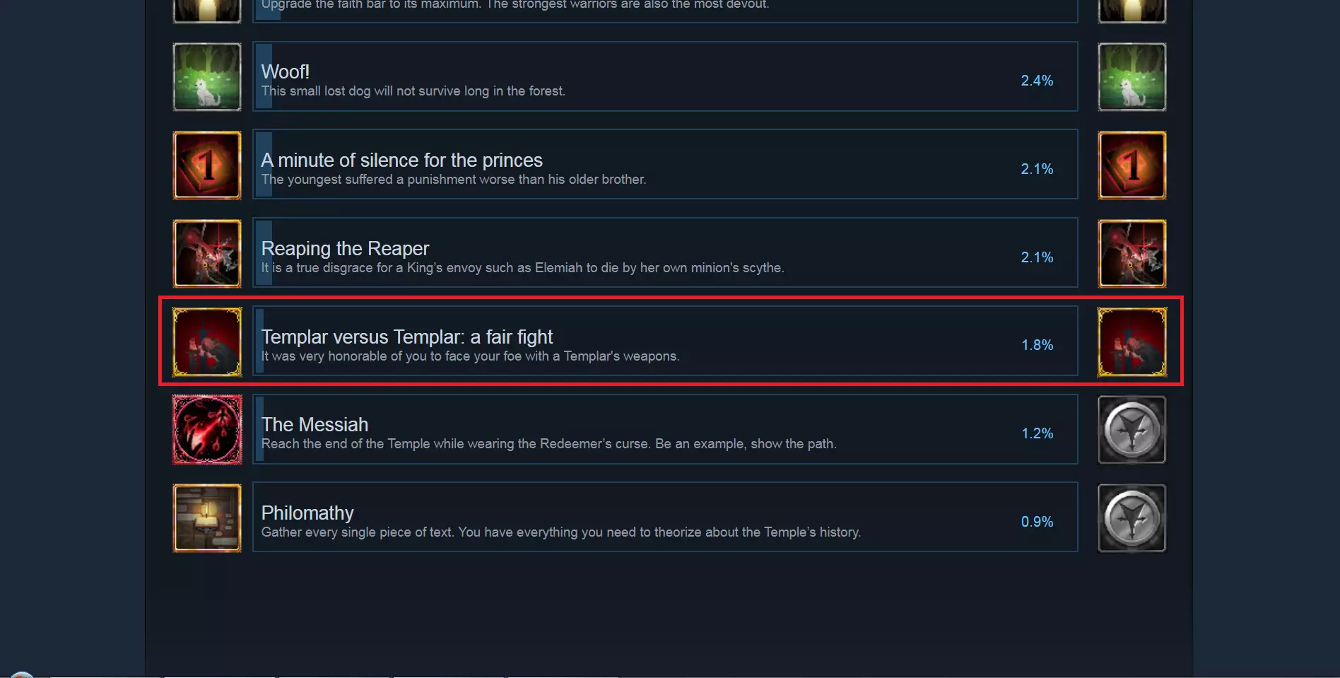 持续成长系统 不必担心死亡后失去辛苦获得的装备。《黑暗献祭》拥有多种持续成长元素,助你重回正轨。击杀敌人可获得经验值,用于在安全区解锁被动技能。但需谨慎选择技能,因为每行技能只能激活一个。 探索世界也能获得永久性增益。在圣殿各处可找到石碑,激活石碑后能获得以下增益之一:暴击率、耐力、伤害或信仰。 最后,完成圣殿抄写员的任务、击败 bosses 或找到更高品质的武器,都将解锁制作配方。通过锻造系统,你可以在每次死亡后修改初始装备。