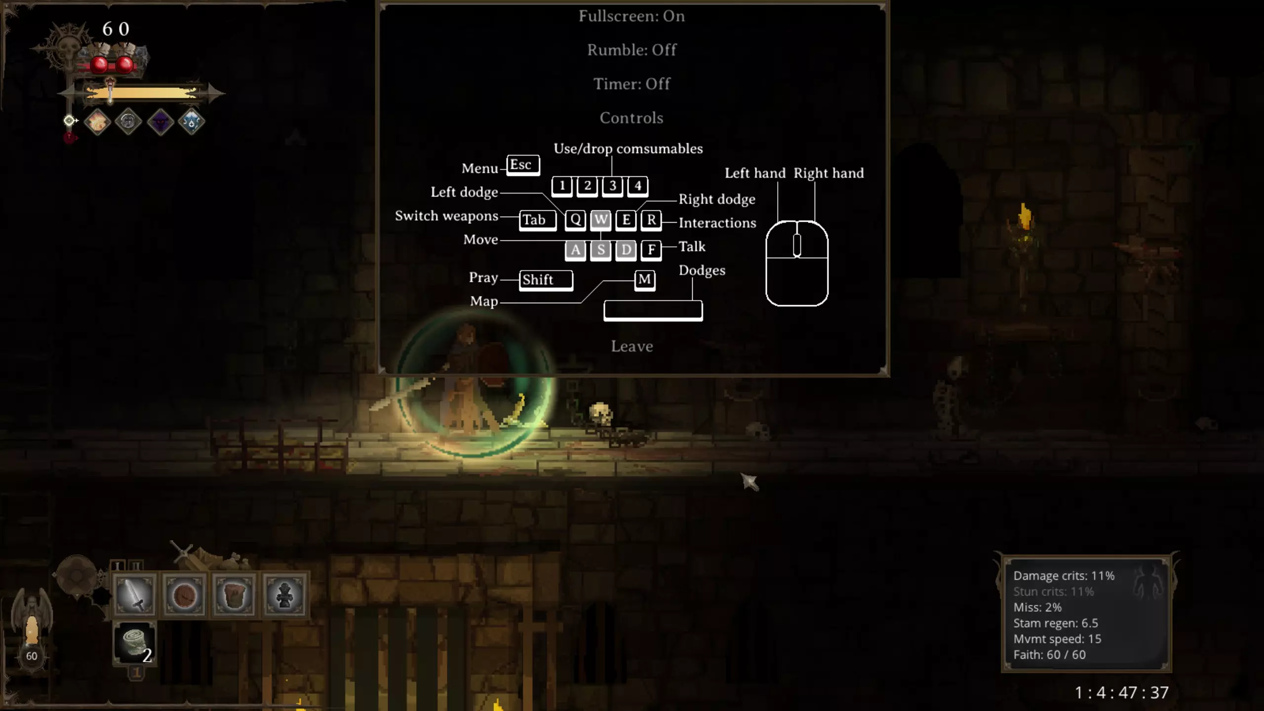操控 《黑暗献祭》由于战斗不涉及纵向操作,因此使用鼠标和键盘游玩体验相当不错。不过,游戏不支持按键重映射,这意味着玩家只能使用默认的按键布局。