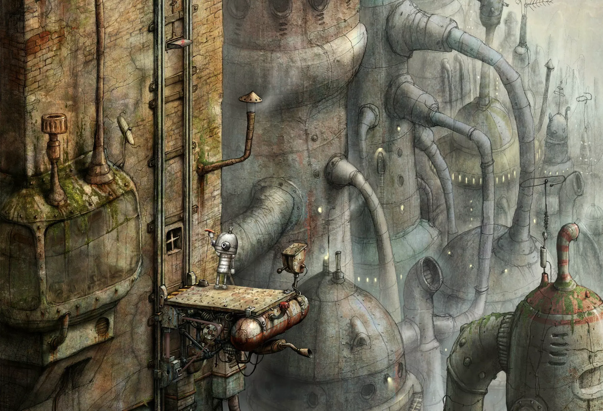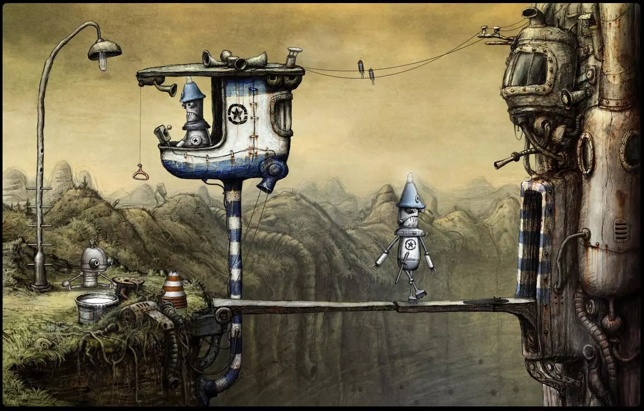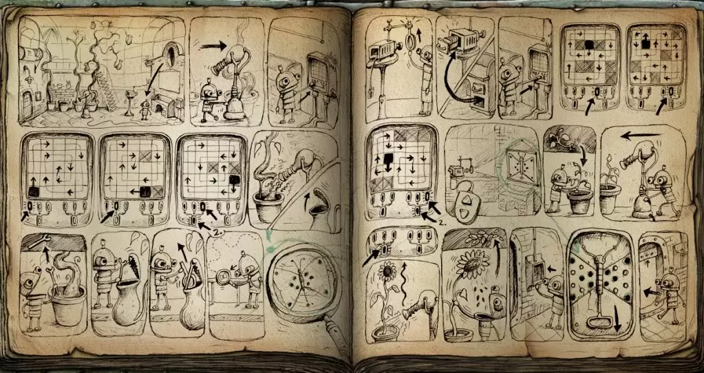 《机械迷城》——由Amanita Design工作室推出的“金属风”解谜游戏。 发行日期: PC:2009年10月16日 PlayStation 3:2012年10月9日 iOS:2011年9月8日 PS VITA:2013年3月26日 这是一个关于小机器人约瑟夫的故事,他想要帮助自己的朋友从囚禁中逃脱。一路上,他遇到了许多不同的角色和障碍。与主要敌人——黑帽帮正面交锋。注意!本指南中除了通关视频外,还有书页内容,其中直观展示了如何通过各个地点。