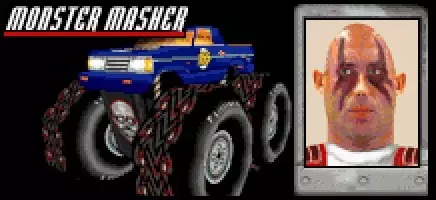 车辆:怪物碾压者 最高速度:130英里/小时 0-60英里加速时间:5.9秒 整备质量:2.9吨 赛车编号:155 对手等级:1 强度(1-5):3 可夺取?:是,等级低于55 出现于:仅在Splat Pack中 描述:“赫尔曼喜欢清晰地看到前方的道路,讨厌陷入交通堵塞。幸运的是,他开的是碾压者!” 建议:赫尔曼·怪物是一名激进的驾驶者,他更喜欢攻击其他驾驶者而不是比赛。你会经常看到他在空中飞行或攀爬障碍物,试图在遭受重创后撤退。 怪物粉碎机是一辆巨大的、典型的怪物卡车。仅车轮就比《血腥扩展包》中的其他所有车辆都要高大——甚至包括其他配备超大轮胎的车辆(比如史克鲁伊·路易的旋风)。怪物粉碎机的最高速度和加速度充其量只能算中等,但它的重量却远超平均水平。重达2.9吨,它是《血腥扩展包》中第三重的车辆(仅次于卡车妈妈的死亡 rig 和海尔加·施魏因的疣猪),如果你不算镇压者的话。 赫尔曼的卡车在游戏中有点难摧毁,而且由于它的重量,也不容易被推动。它有个习惯,当你和它碰撞时会从你身上跳过,而且多亏了怪物卡车轮胎,它的弱点位置很高,你很难够到。运气好的话,它在空中飞跃后会侧翻(极少数情况下会四轮朝天)——抓住这个机会,高速撞击它的前部。怪物粉碎机的装甲只是一般水平,所以只要位置正确,摧毁它并不太难。 怪物粉碎机可以从55级或以下的对手那里抢夺。不过,由于在你试图摧毁其他司机时它经常会翻车,所以它的表现不如许多其他中期游戏车辆。这些失控情况很快就会变得很烦人,还会减少你的收益。 伊万·杂种:熊