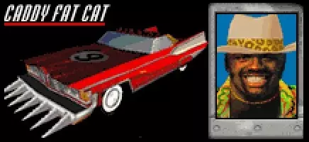 载具:欺诈布罗科 最高速度:170英里/小时 0-60英里加速时间:8.9秒 整备质量:1.9吨 赛车编号:8 对手等级:1 强度(1-5):3 可窃取:否 出现于:仅《死亡赛车》 描述:“他看起来是个友善的家伙,但外表可能具有欺骗性,他开着那辆四驱车的样子,你会以为他在逃命!”——OK·斯廷普森 “这个人喜欢橙子,但由于他那夸张的悬挂系统,他总是把橙汁洒得到处都是!”- 多汁·琼斯 在美国版的《死亡赛车》中,OK·斯廷普森被命名为多汁·琼斯——他衬衫上的血迹经过编辑和重新上色(使其看起来像橙汁……或O.J.),并且人物简介也进行了重写。 多汁·琼斯的肖像与其他竞争对手相比有一些明显的不同——他的名字使用了不同的字体,并且没有任何过渡效果,这使得这些变化显得相当突兀和不协调。尽管与O.J.辛普森的明显相似性似乎是可能的原因,但官方从未就这些变化的原因发表过声明。 提示:OK·斯廷普森并不是一个特别具有攻击性的司机,尽管他的汽车外观如此,并且如果他开始受到伤害,他会逃离危险——这使他成为初代《死亡赛车》中较容易对付的对手之一。如果你靠近它,它就会攻击你,但随后会尽快逃离危险。 欺诈布罗科是一辆大型SUV,比赛季初期出现的任何其他车辆都要重得多——事实上,它是一级车辆中最重的。它的最高速度和加速度顶多只能算中等,但它庞大的体型和带刺的防撞杆无疑给人一种它比实际更危险的印象。欺诈布罗科有一个很大的问题——它似乎永久装备了【哎呀,果冻悬挂!】道具。悬挂系统异常松散,车架在车轮上方晃动,仿佛没有减震器一样,这意味着“欺诈破车”非常容易侧翻——事实上,OK·斯廷普森通常不用你费多少劲自己就会翻车。 斯廷普森的SUV在正面碰撞时非常脆弱,而由于他在比赛中大部分时间都可能处于侧翻状态,所以很容易瞄准。“欺诈破车”的强度等级为3,因此即便是初始车辆,即使没有攻击性升级,也应该能轻松应对它。 当赛季完成且所有作弊车辆都解锁后,绝对值得开着“欺诈破车”兜一圈,看看OK在整个赛季中都忍受了些什么。 奥蒂斯·P·杰弗克:凯迪拉克肥猫