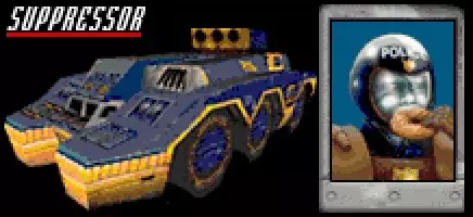 车辆:镇压者 最高速度:250英里/小时 0-60英里加速时间:18.79秒 整备重量:5.0吨 赛车编号:501 强度(1-5):-1 可抢夺?:是,等级9以下 登场作品:《死亡赛车》及《死亡赛车:血溅包》 你只会在《死亡赛车》和《死亡赛车:血溅包》的一条赛道上遇到它们。特种部队冷酷无情、毫不松懈且极具攻击性——干掉它们比对付其他任何竞争对手都要困难。 镇压者是终极杀戮机器——体型庞大、速度飞快,且几乎坚不可摧。重达5.0吨,它比《死亡赛车》中的任何车辆都要重,与《血溅包》中的“末日卡车”并列最重。250英里/小时的最高速度使“镇压者”与“黄鹰”并列《死亡赛车》第五快(仅次于“歼灭者”、“塔希塔双门轿跑”、“伯爵斩”和“恐惧法拉利F666”)。 你需要一辆极其沉重且坚固的车辆才有机会对抗它们;在《死亡赛车》中,“凯迪拉克肥猫”或“拖车大师”应被视为最低配置,但“犁刀”会是首选。在《血溅包》中,除了上述三辆车外,还可以考虑“末日卡车”,也可能包括“怪物粉碎机”。五级的装甲、攻击和动力升级对于突破“镇压者”的装甲来说是绝对必要的。在《 Carmageddon Max Pack》中,特种部队仅会出现在第33场比赛【屋顶喋血】中,位于第四个检查点旁的一栋建筑屋顶上。跟随路标进入建筑并来到屋顶,奋力直接开到巨大装甲车的后方,将其从建筑上撞下去——全程保持与装甲车后端接触,你应该能以惊人的力量将它猛砸到柏油路上,造成巨大伤害。希望这次坠落能让镇压者侧翻或四轮朝天——小心地将它推到墙边,然后尽快对准其侧面进行撞击。你要尽可能阻止特种部队攻击你,因为在任何情况下你都无法在力量上胜过它。 Agent Orange: Leadpumper